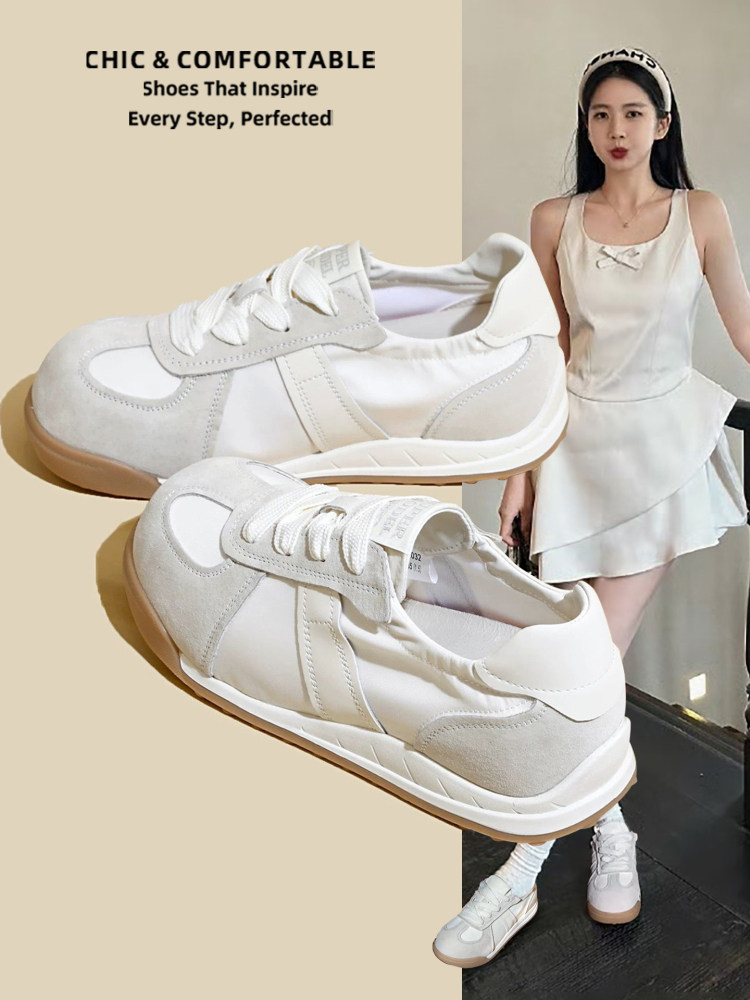 Sanli Genuine Leather Thick-Soled Sneakers Versatile German Training Shoes for Women 2026 Spring and Autumn Korean Style Round-Toe White Shoes Lightweight Casual Shoes