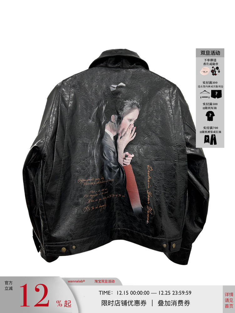 Wanna Lab 25Ss Dragonfly Woman Portrait Ultra-Clear Ink Print Vintage Wrinkle Wax Leather Jacket for Men
