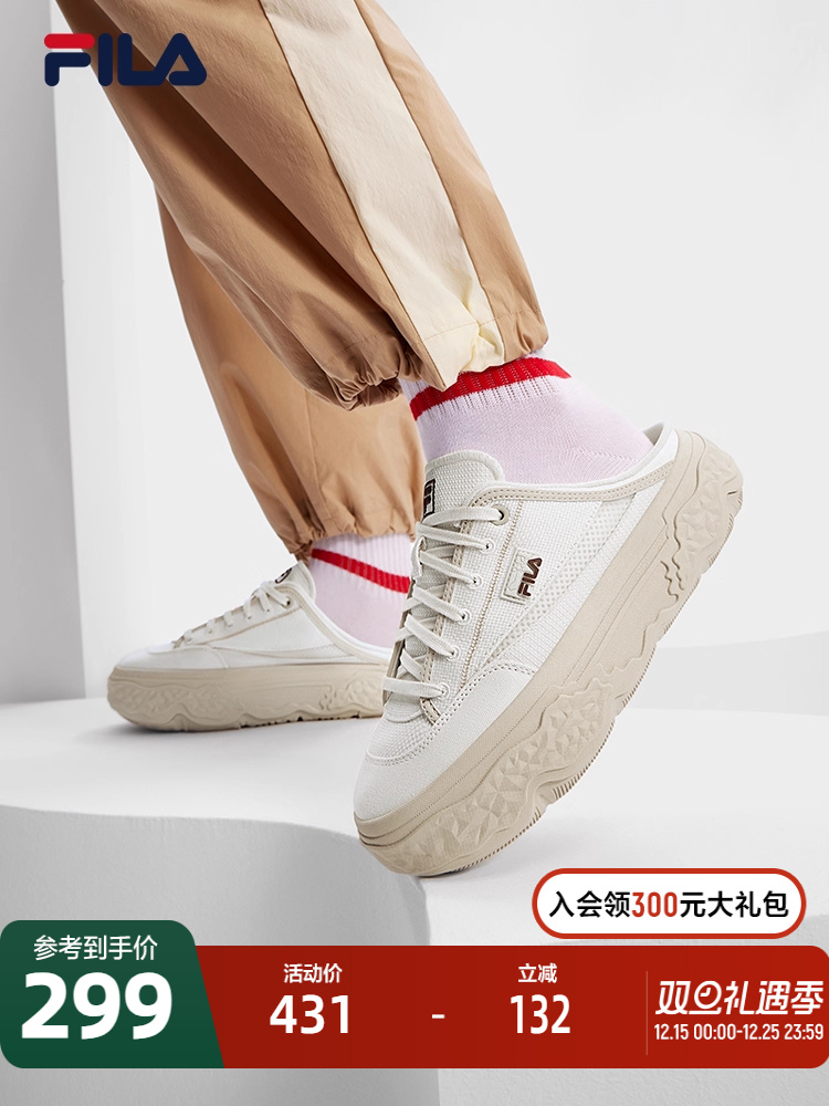 Fila Official Women's Shoes Rock Rock Mules Retro Canvas Shoes 2024 Autumn Casual Shoes Sneakers
