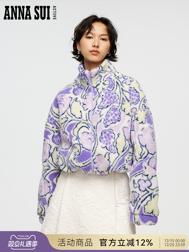 Anna Sui Anna Su Sports Classic Anna Series Autumn and Winter Faux Shearling Fluffy Breathable Stand Collar Jacket