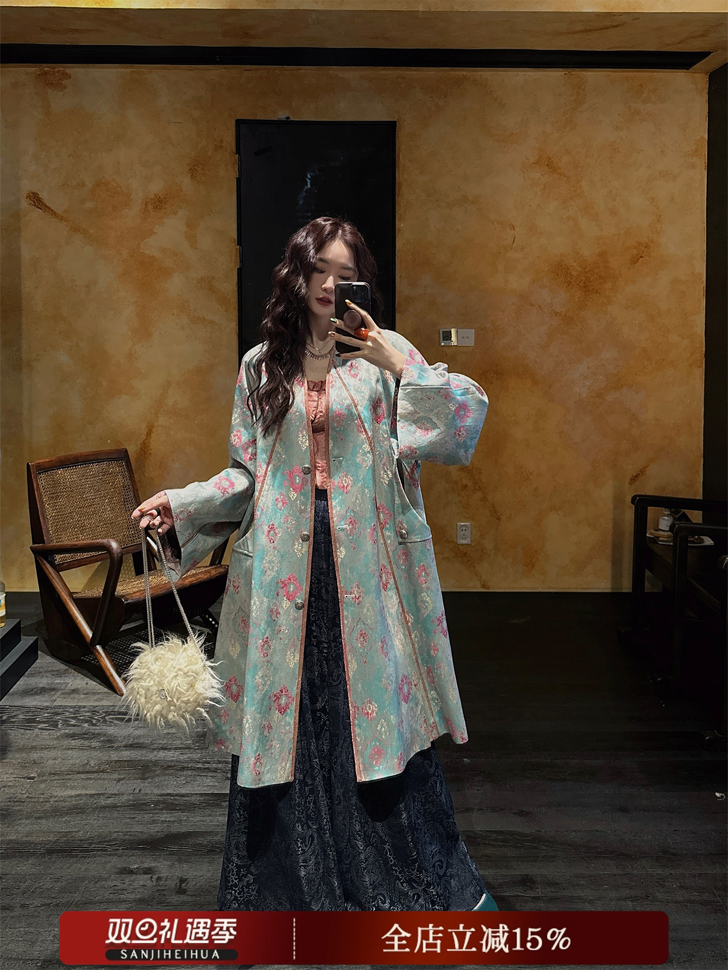 Sanzhi Heihua [Jinyutang] Women's 2025 New Color-Woven Embossed Jacquard Wool Coat, Unique and Super Beautiful