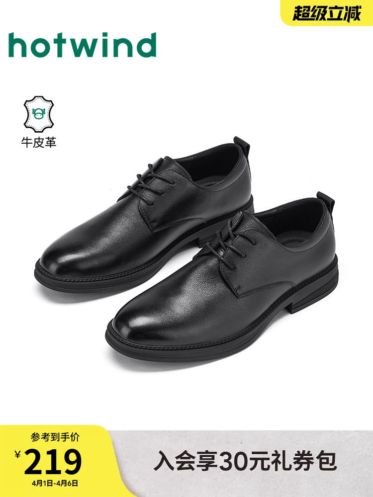 Hotwind Men's Shoes 2026 Spring New Men's Fashion Casual Shoes Plain Derby Shoes Business Formal Leather Shoes