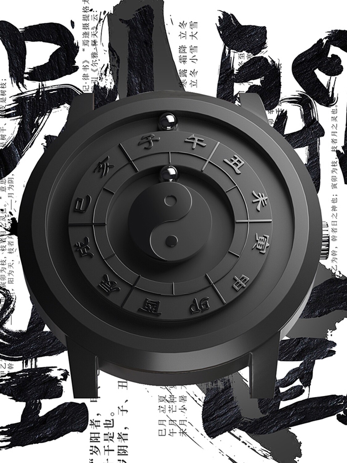 Original Magnetic Niche Watch with Twelve Zodiac Signs, Chinese Style Sundial, Tai Chi Men's Model, Unique and Quirky Gift Box