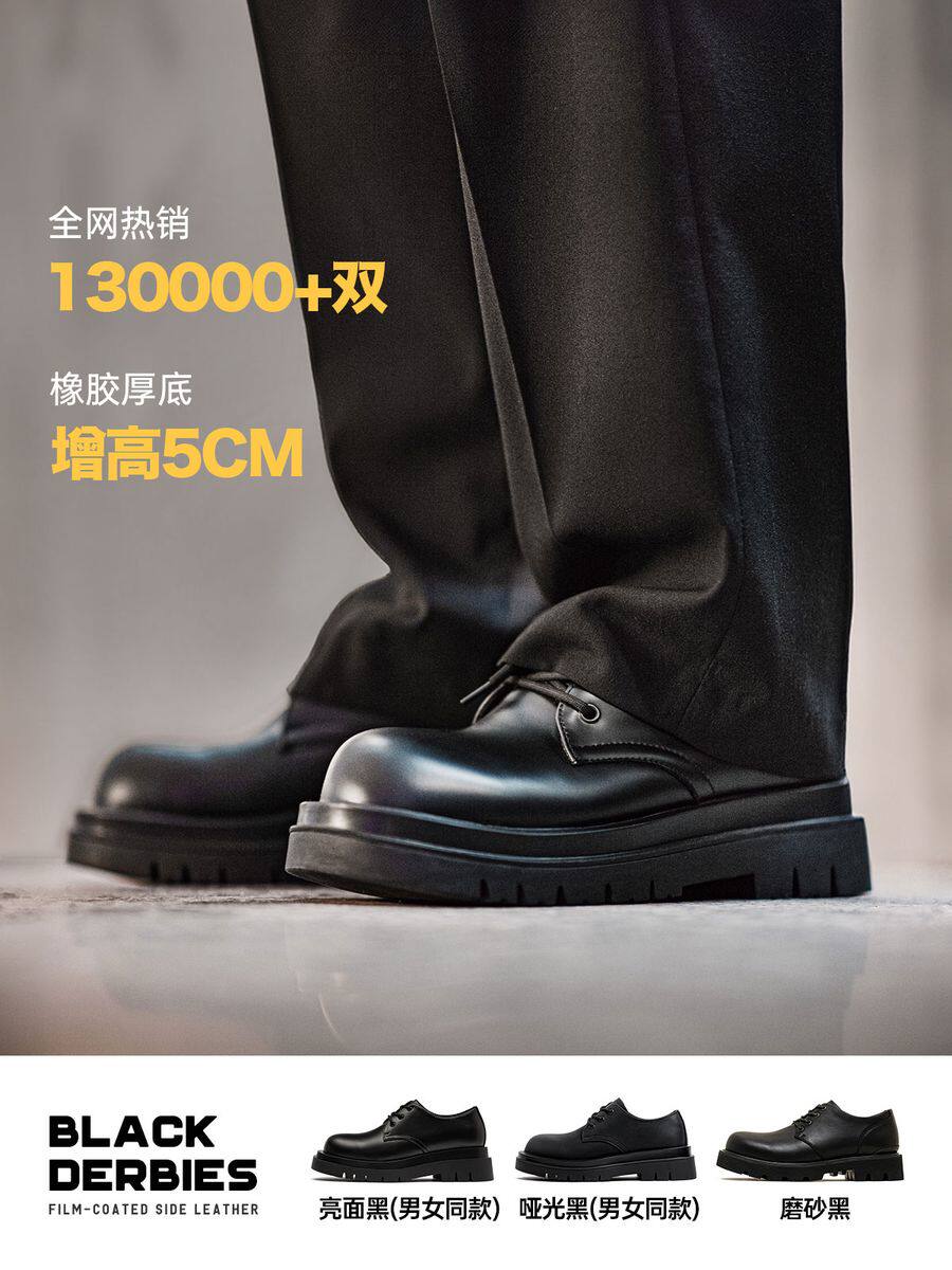 Madden Derby Shoes for Men, Thick-Soled, Height-Increasing, Black, Large Round Toe, Commuter Cleanfit Workwear Casual Leather Shoes
