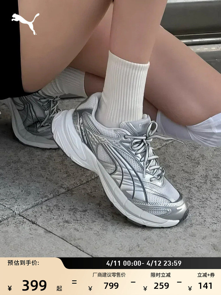 Y2K Silver Height-Increasing Dad Shoes Silver Wing Shoes for Men and Women Puma Spring Thick-Soled Shoes Velophasis 406204