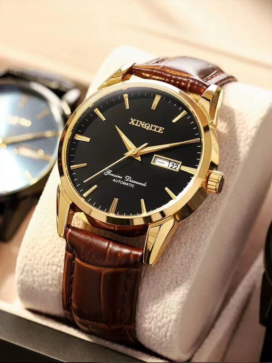Swiss Genuine Watch Men's Fully Automatic Mechanical Watch Fashionable Business Ultra-Thin Waterproof Luminous Quartz Leather Strap Model