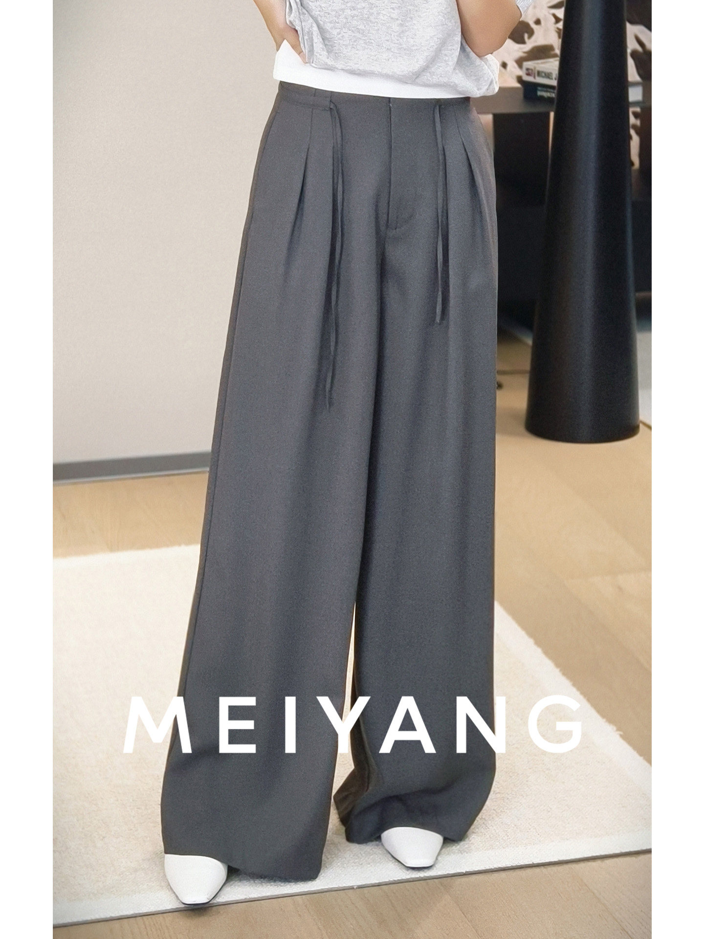Meiyang Melbourne Trousers, Linen-Feel, Three-Dimensional Double Pleated Waistband, Straight-Leg [Small Size 70 in Stock] - Monday