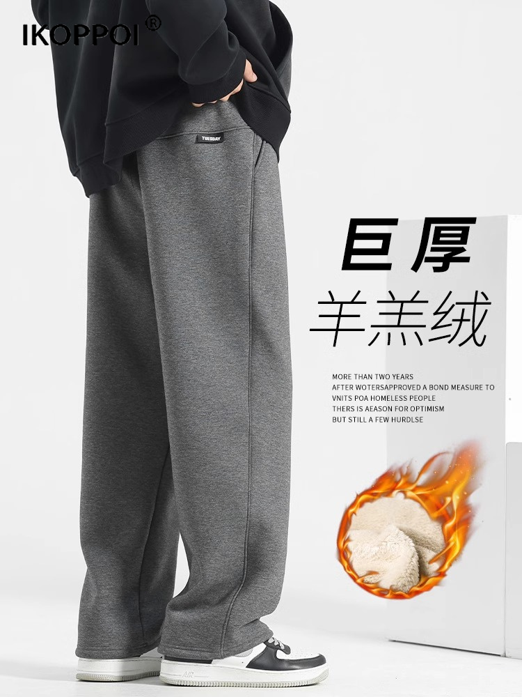 High-End Thickened Lamb Wool Casual Straight-Leg Pants, Fleece-Lined Pants, 2025 Autumn and Winter Loose Sports Pants, Wide-Leg Sweatpants for Men