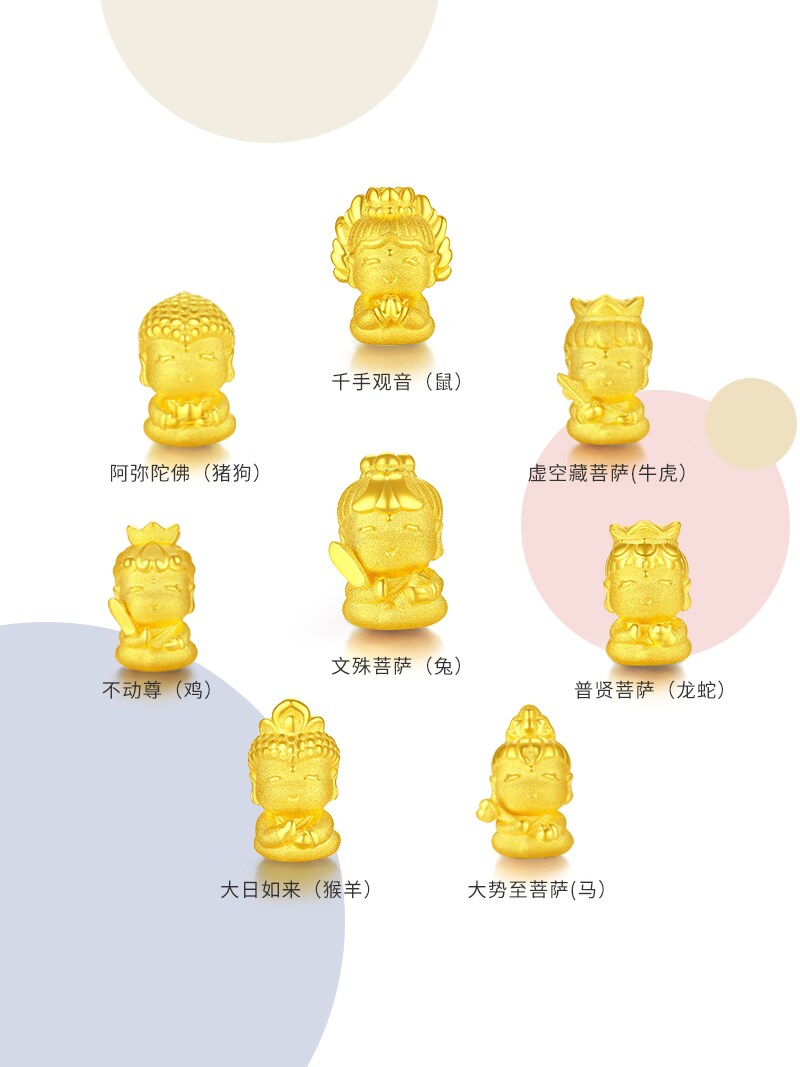 Zokai Twelve Zodiac Guardian Buddha Pure Gold Beaded Bracelet Fortune Beads Gold Investment Bracelet Birth Year Buddha