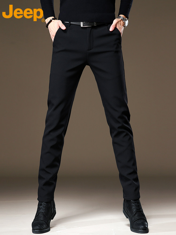 Jeep High-End Men's Slim-Fit Formal Business Trousers for Spring and Summer, Thin Black Wrinkle-Resistant No-Iron Casual Pants for Men
