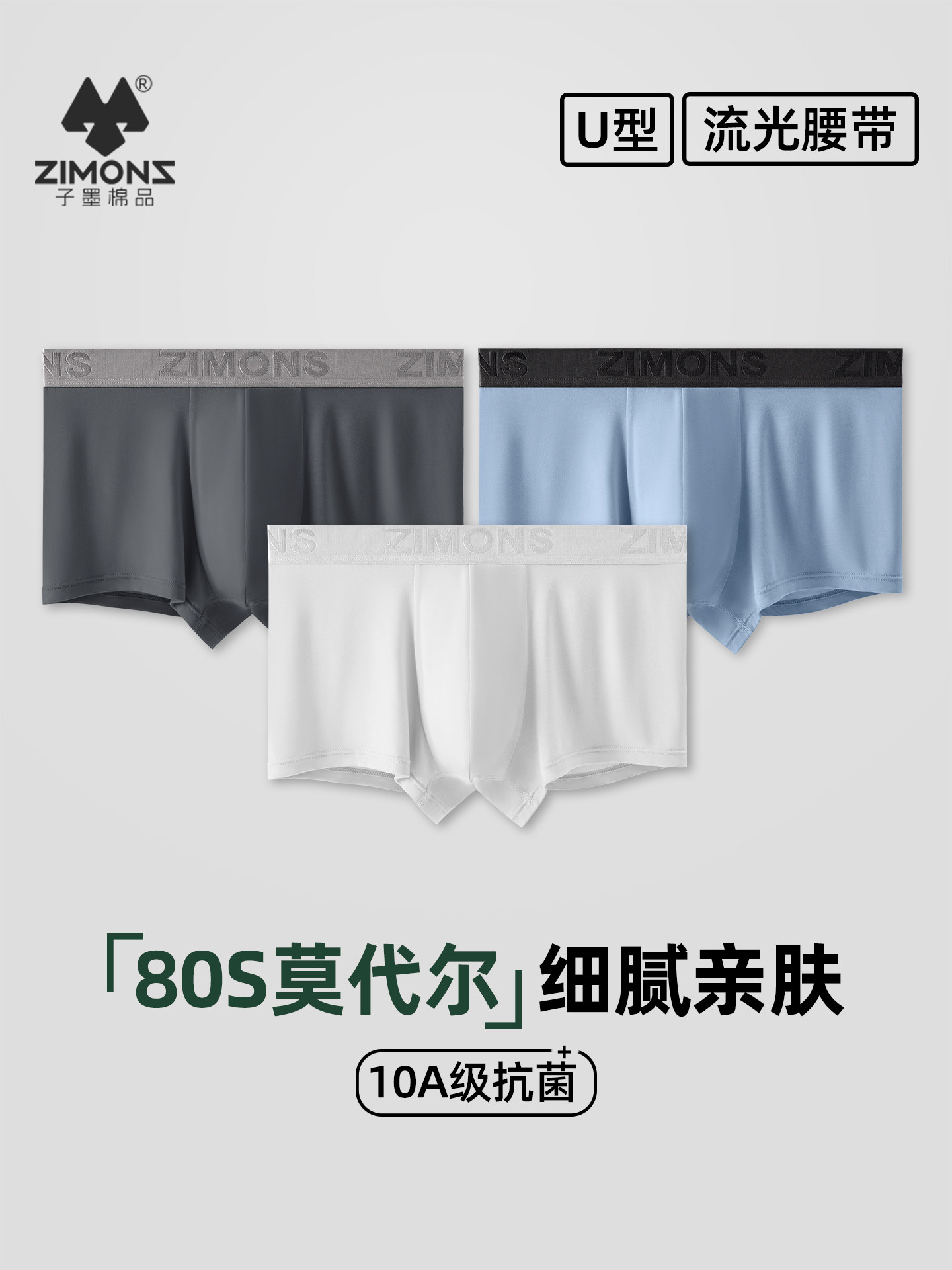 Zimo Men's Underwear 80S Modal Shorts 10A Grade Antibacterial Breathable Boys' Black Solid Color White Non-Binding Crotch Briefs