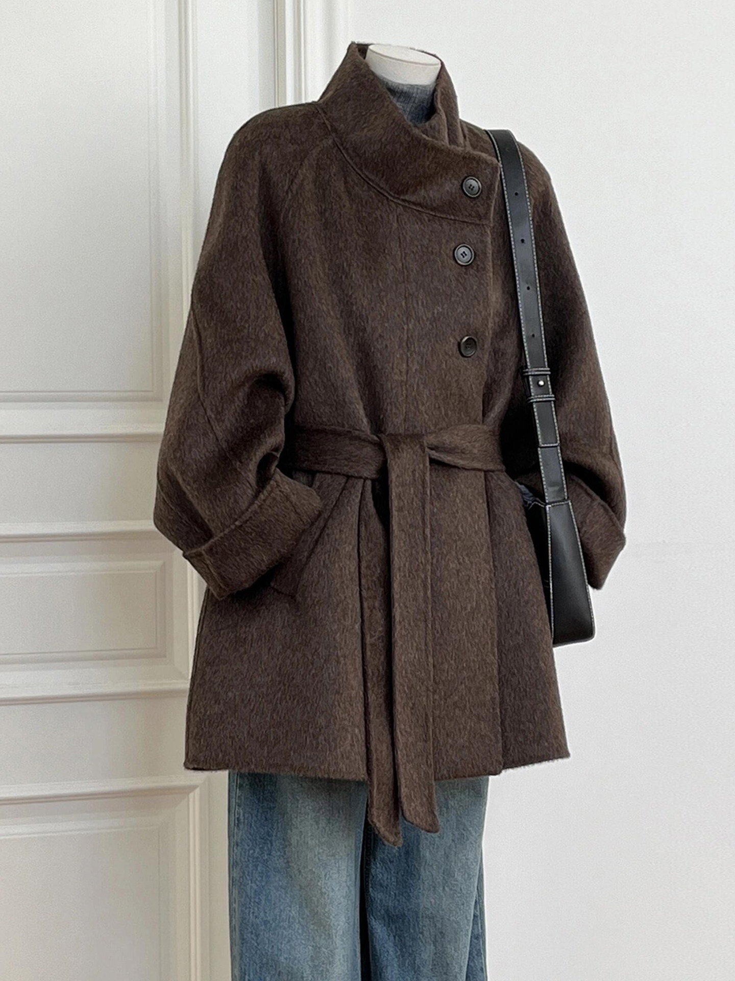 Chuyuqi Norwegian Forest Autumn/Winter American-Style Luxurious Wool Short Coat with Belt, Silhouette-Enhancing, Intellectual Woolen Fabric