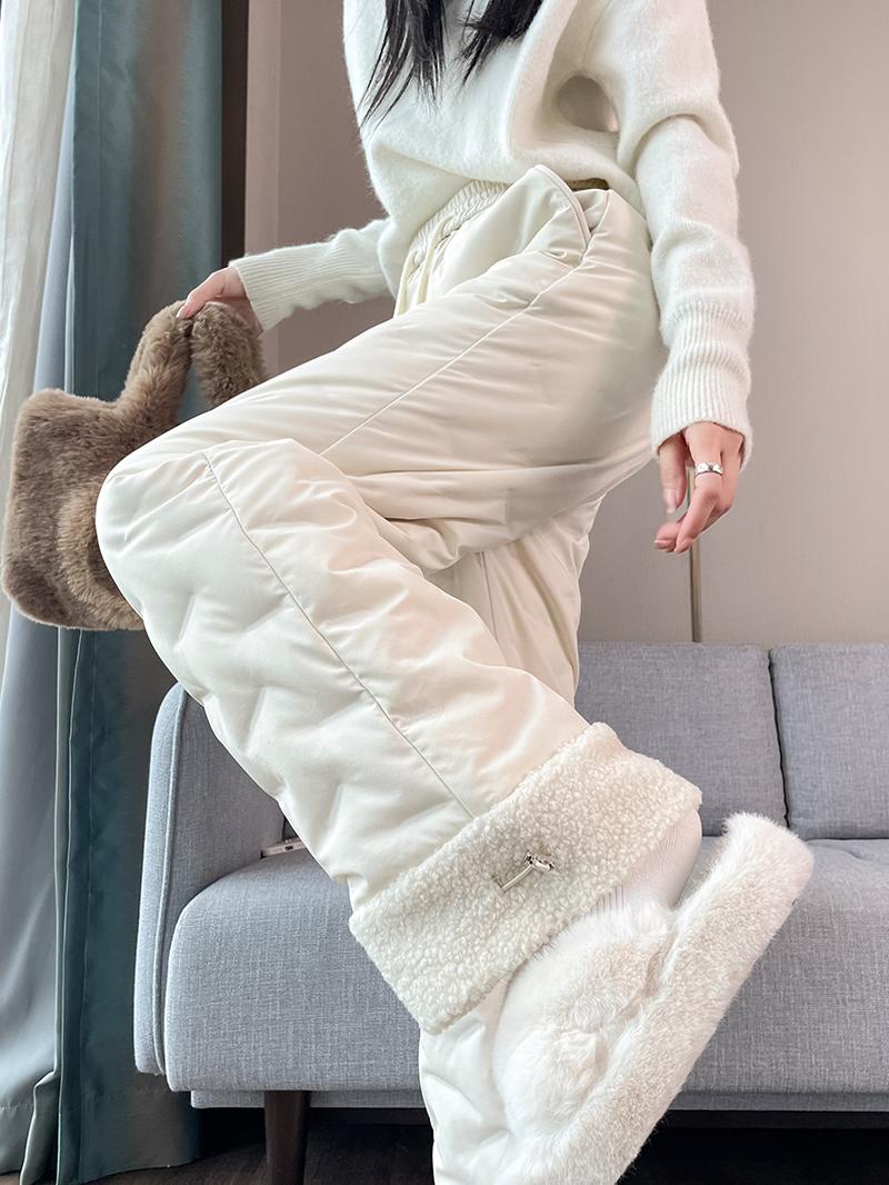 Lamb Wool down Pants for Women, Winter Outerwear, 2025 New Style, Suitable for Temperatures as Low as Minus 40 Degrees in Northeast China, Straight-Leg, Fashionable and Stylish Cotton Pants