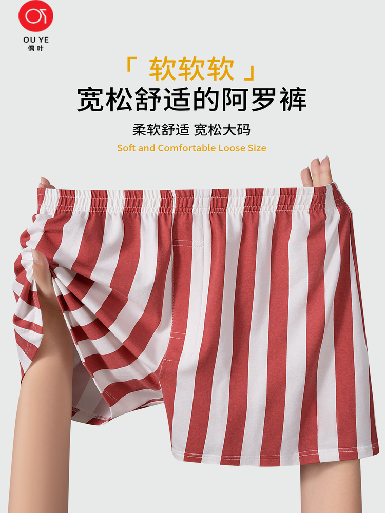 Loose Fit Men's Underwear, Pure Cotton Boxer Briefs, Plus Size, Breathable, Striped, Comfortable, Non-Restrictive Boxer Briefs
