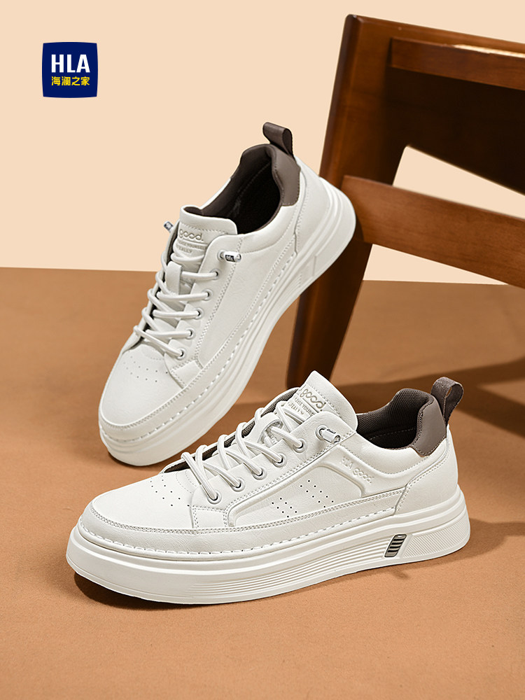 Hla/Hailan Home Men's Shoes New Spring Trend Versatile Comfortable Height-Increasing Casual Sneakers No-Lace White Shoes