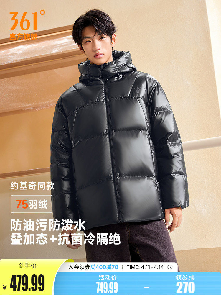 361 Three-Proof down Jacket for Men, Jokic Puffer Jacket, 2025 Winter Hooded Warm Thickened Short down Jacket 1302