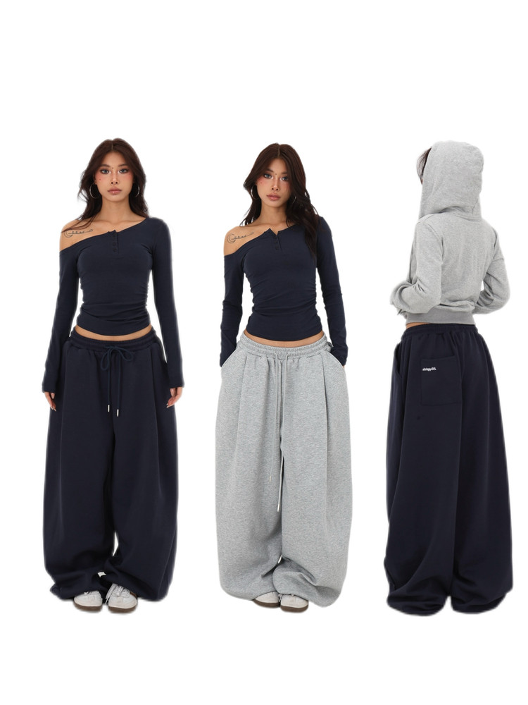 Blinggirls American Retro Letter Embroidered Casual Pants for Women, Loose, Slimming, Versatile Wide-Leg Sports Sweatpants