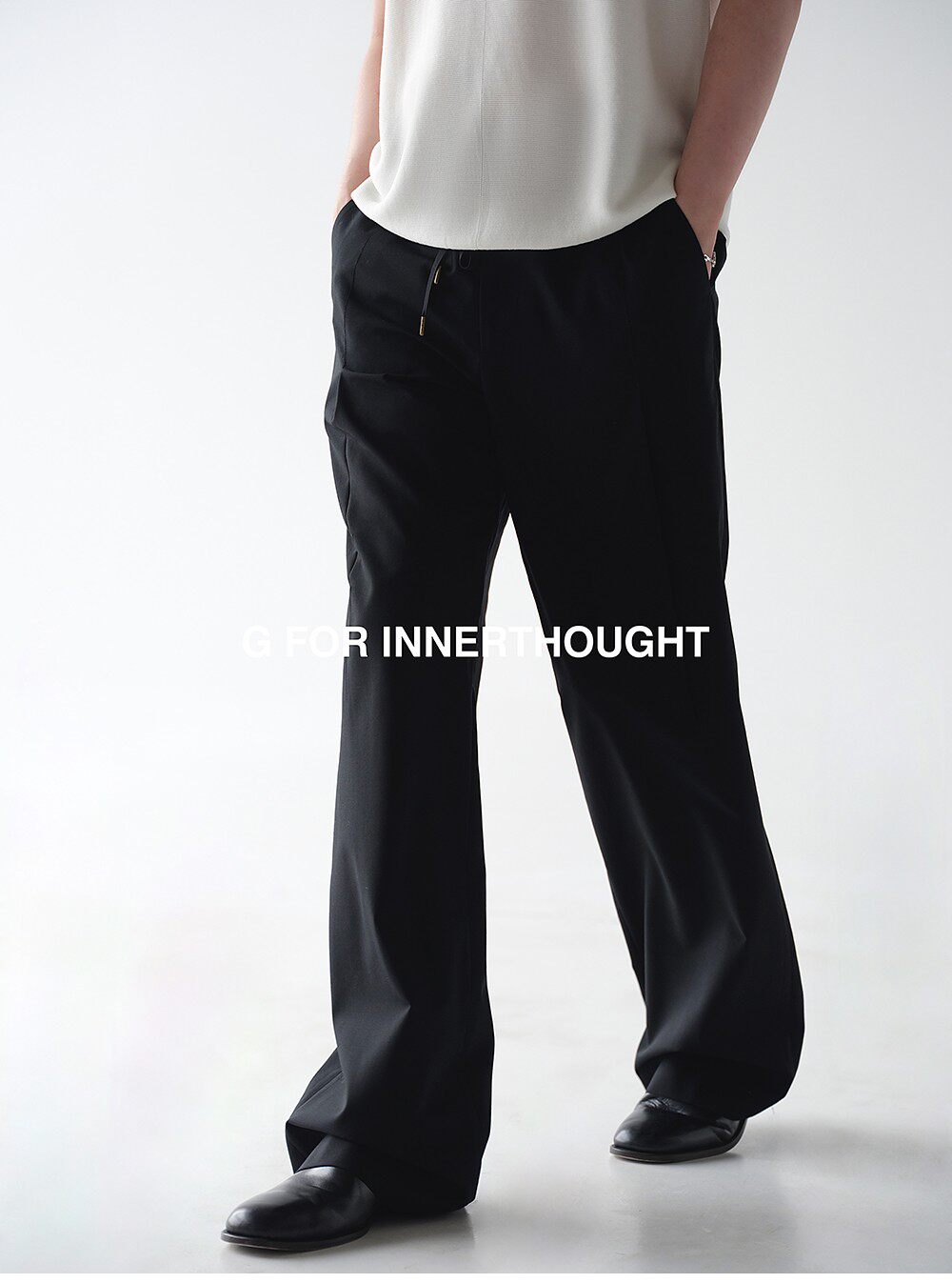 G for Innerthought European Imported Silk Lightweight Drawstring Relaxed Micro-Flared Wool Blend Suit Pants