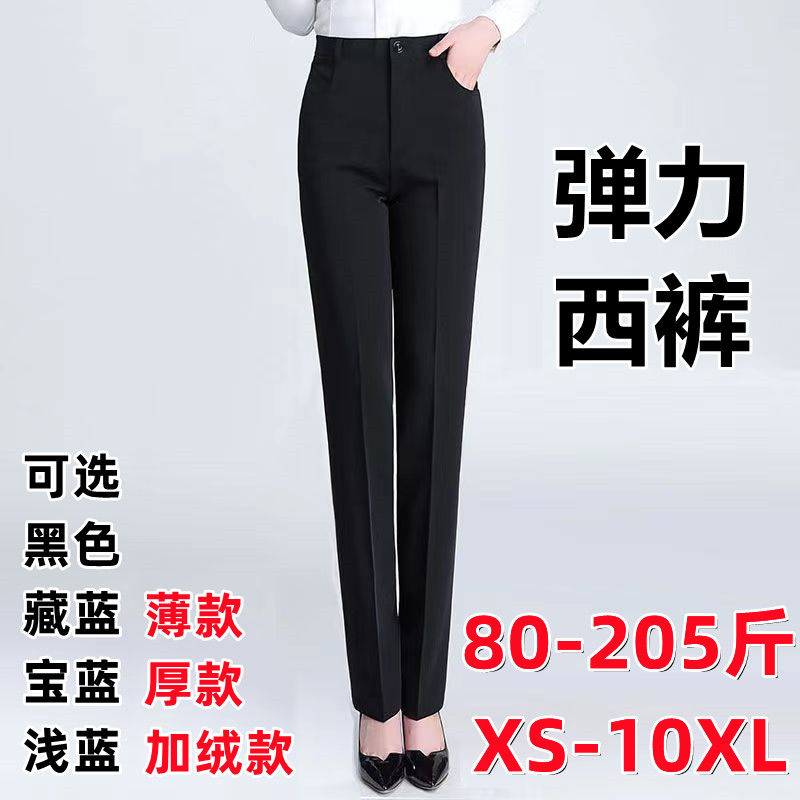 Plus Size Stretch Straight-Leg Dress Pants for Women, Fat mm 100kg High-Waisted Professional Formal Work Navy Blue Suit Pants