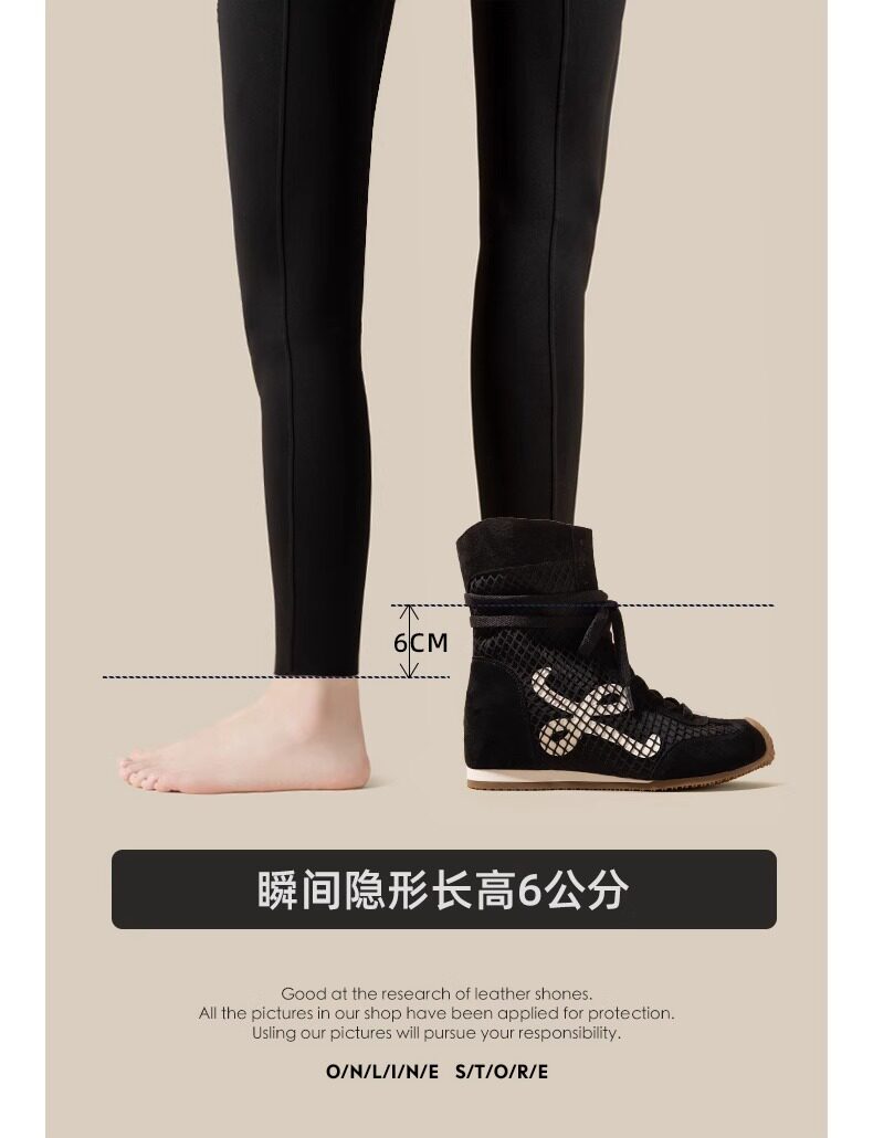 Hidden Heel Genuine Leather Mesh Sandals Women's 2025 Summer Breathable Casual Sports Shoes Sweet Cool Style Soft Sole Plaid High Top Shoes
