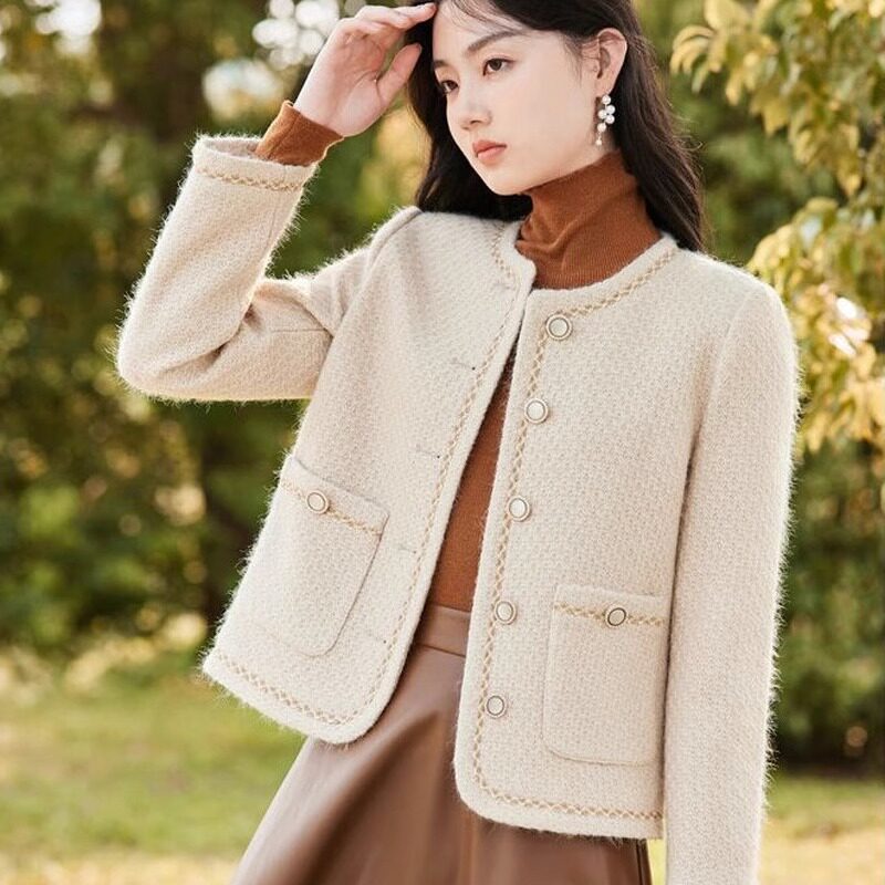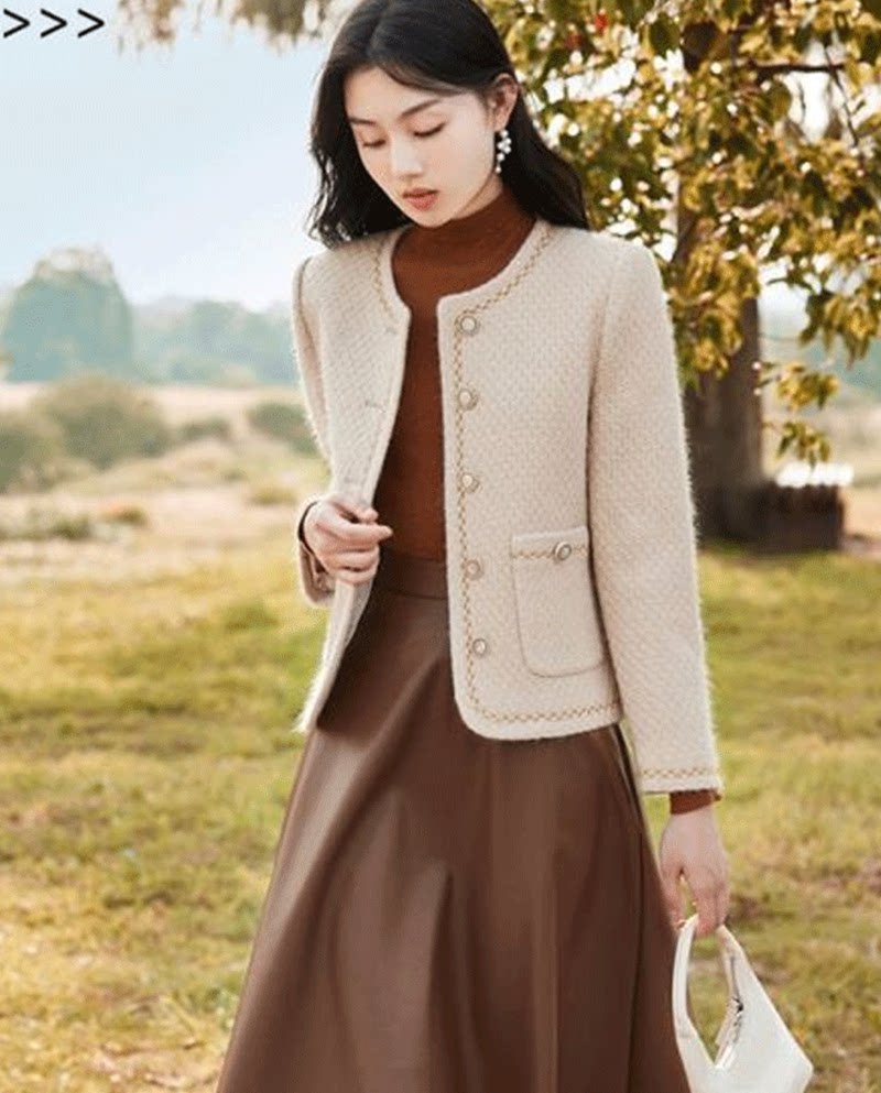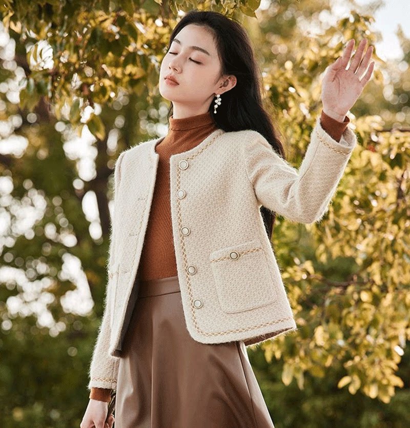 2025 Spring & Fall New arrival Xiaoteng Amashiyue Shopping Mall Same Style French Celebrity Tweed Round Neck Tweed Style Outwear