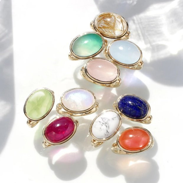 Onegirl Hibiscus Stone Ring Small Pigeon Egg S925 Silver Inlaid Natural Colorful Gemstone Ring