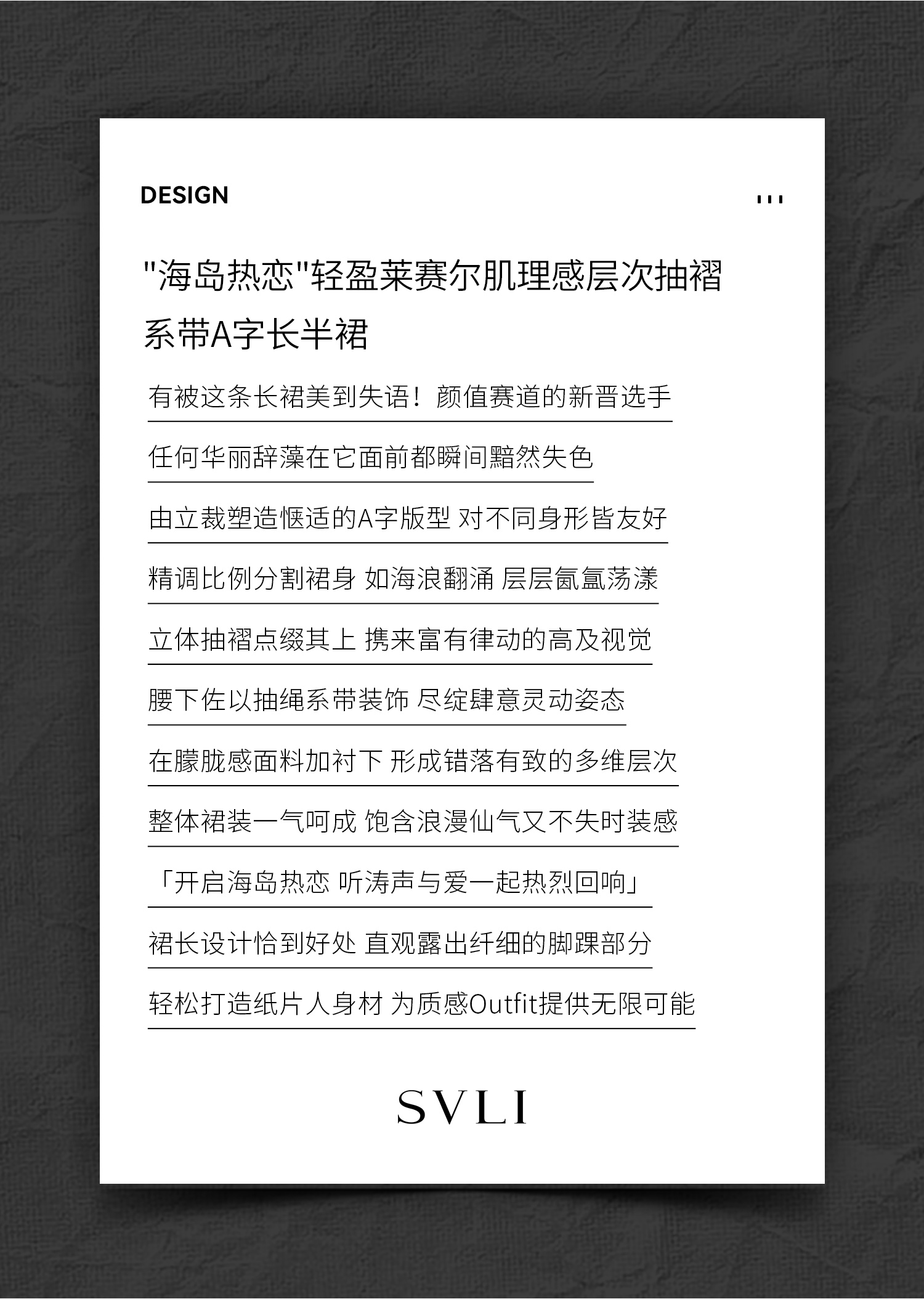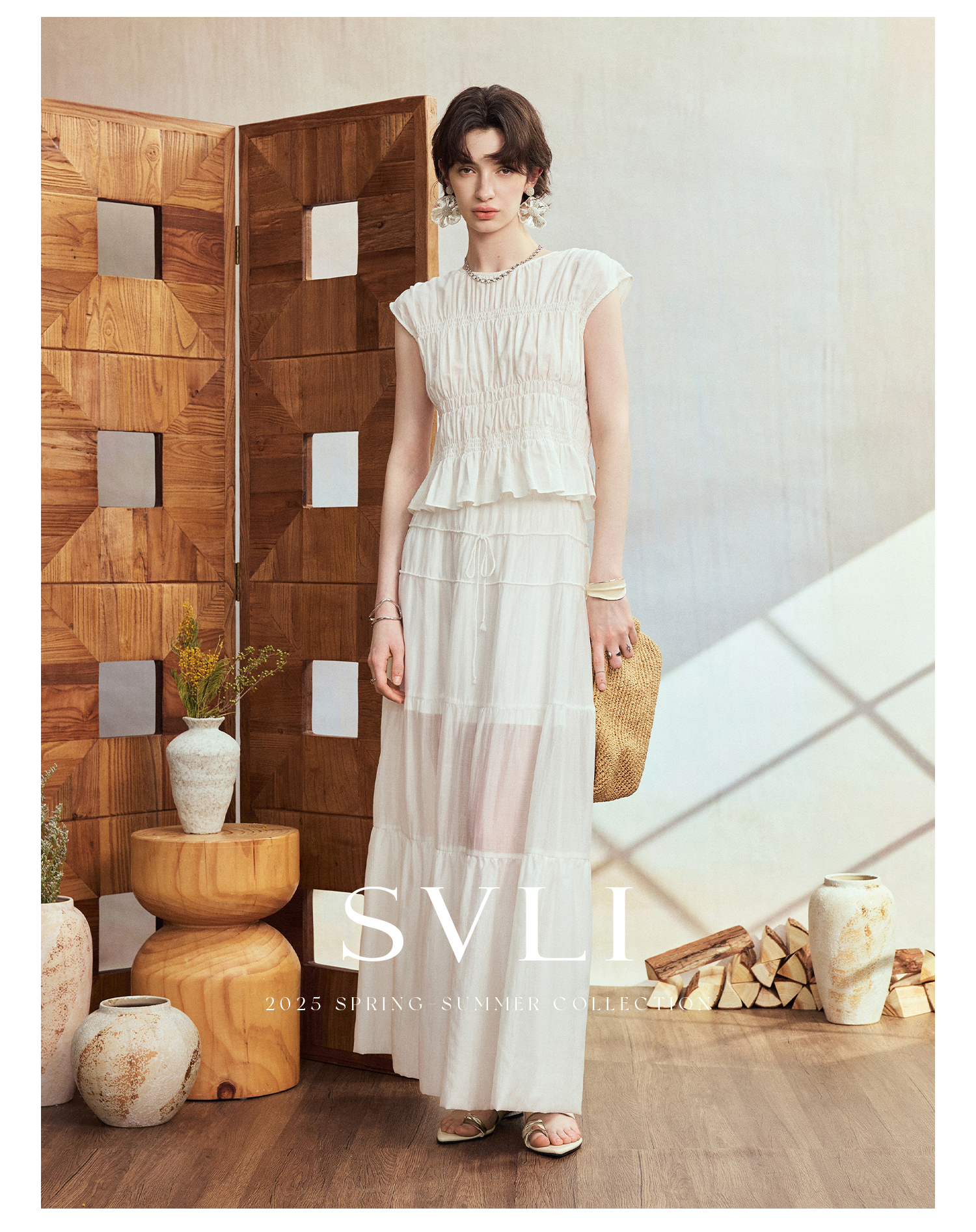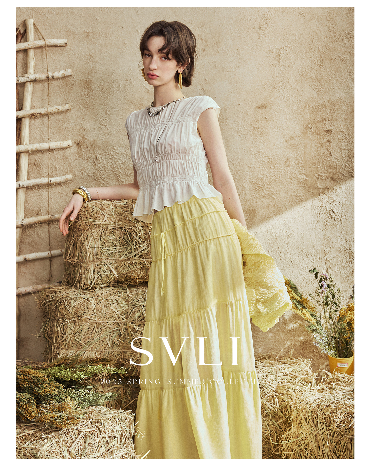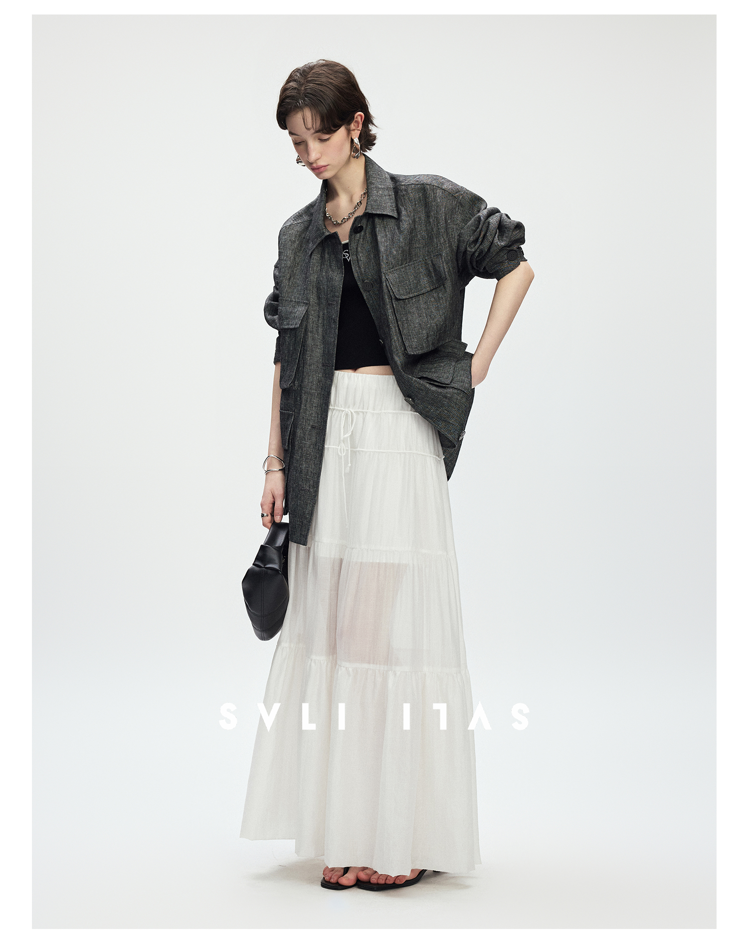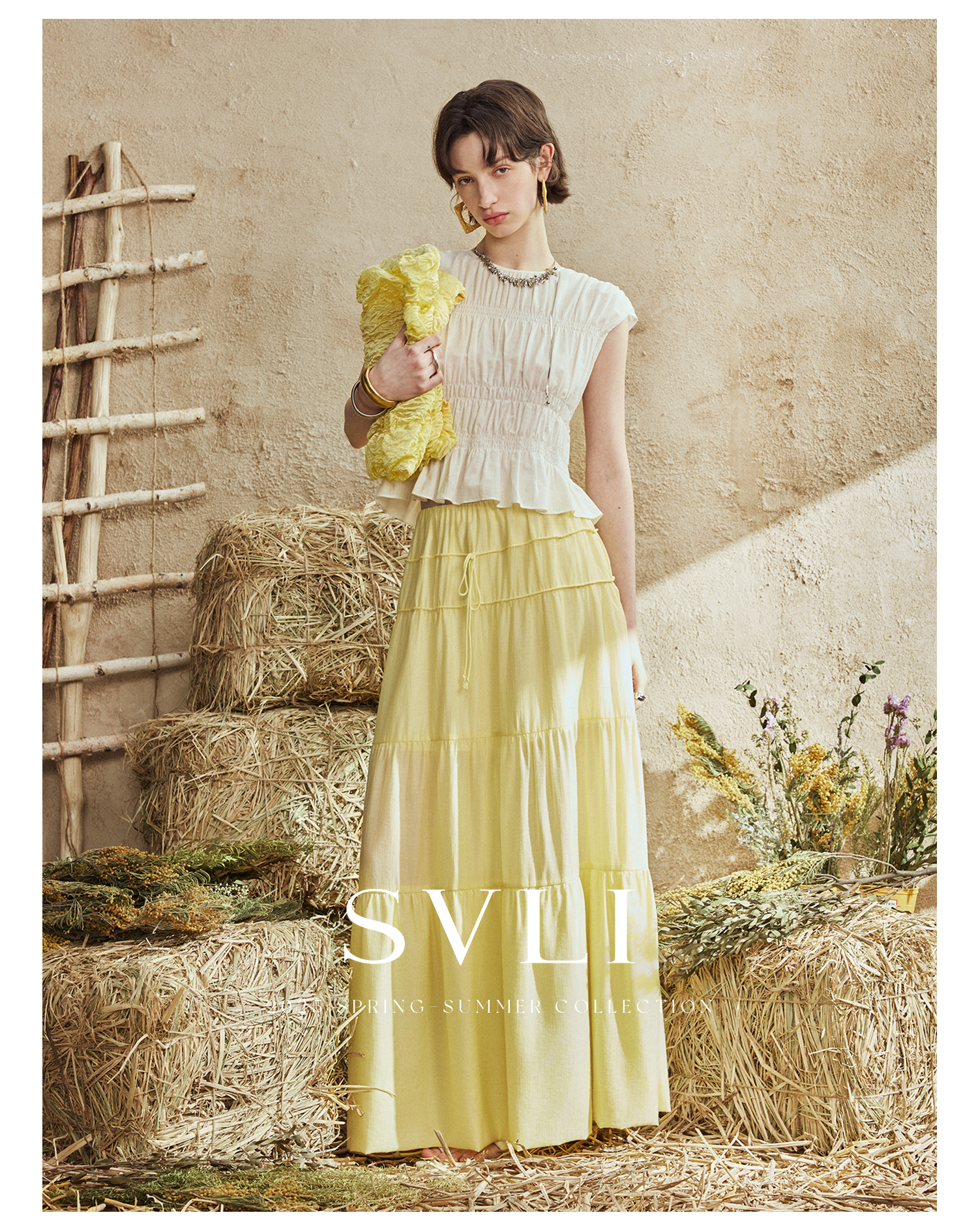Svli|'Island Romance' Lightweight Lyocell Textured Layered Ruched Tie A-Line Long Skirt