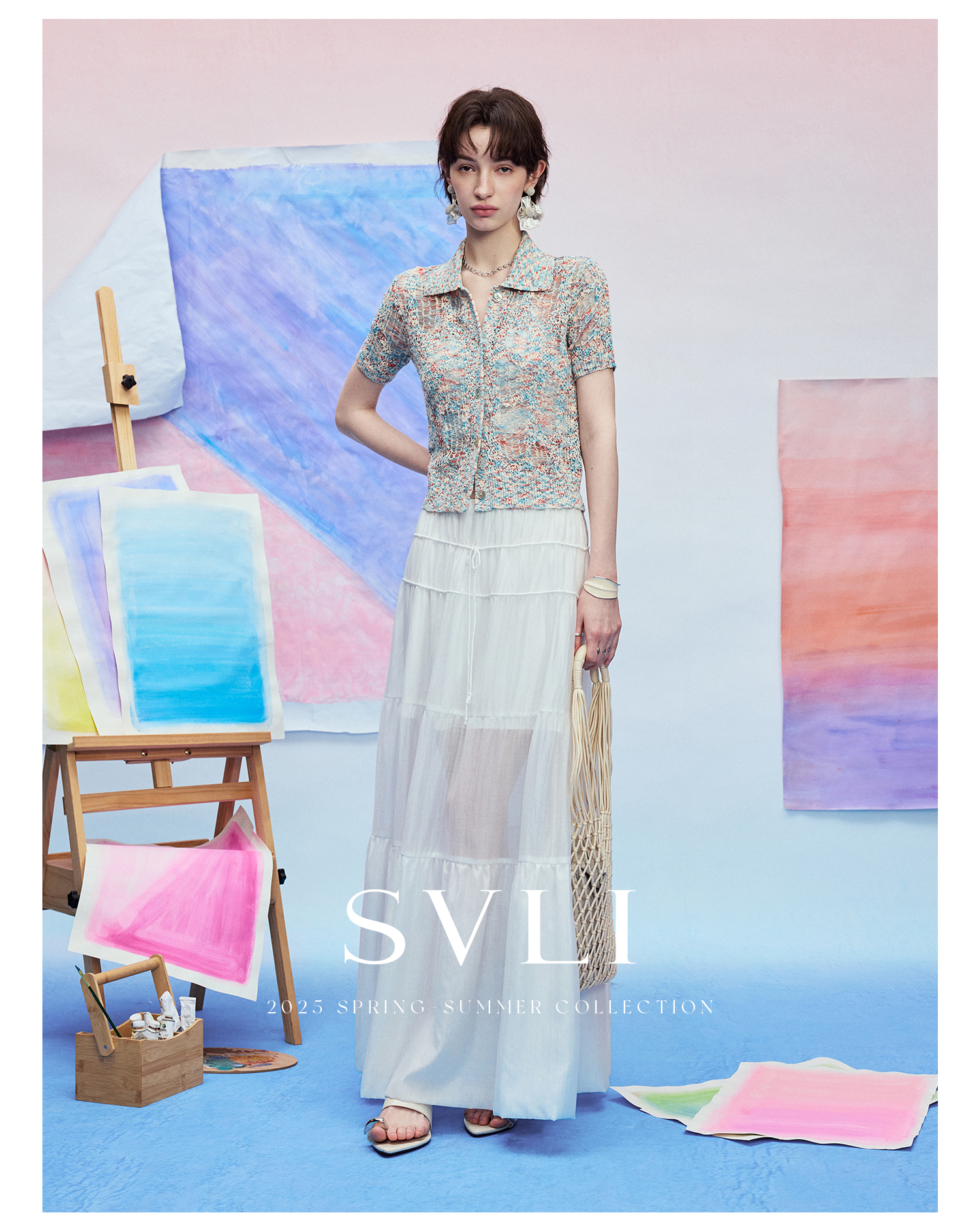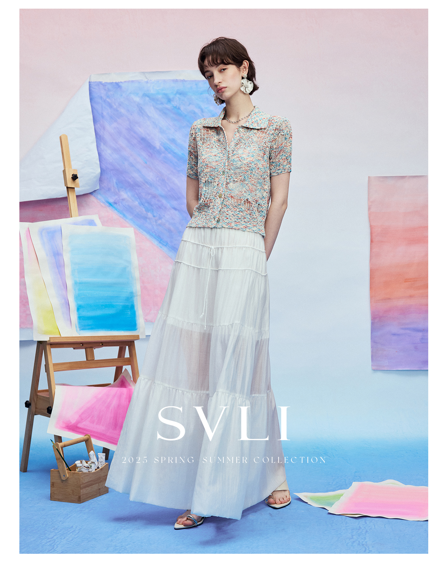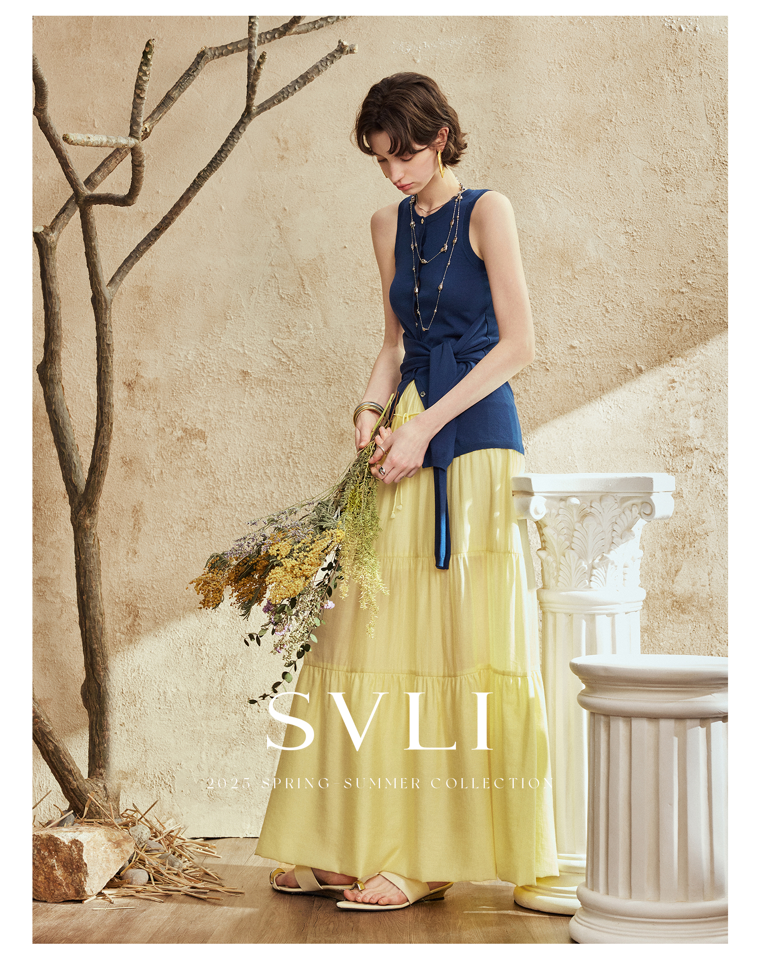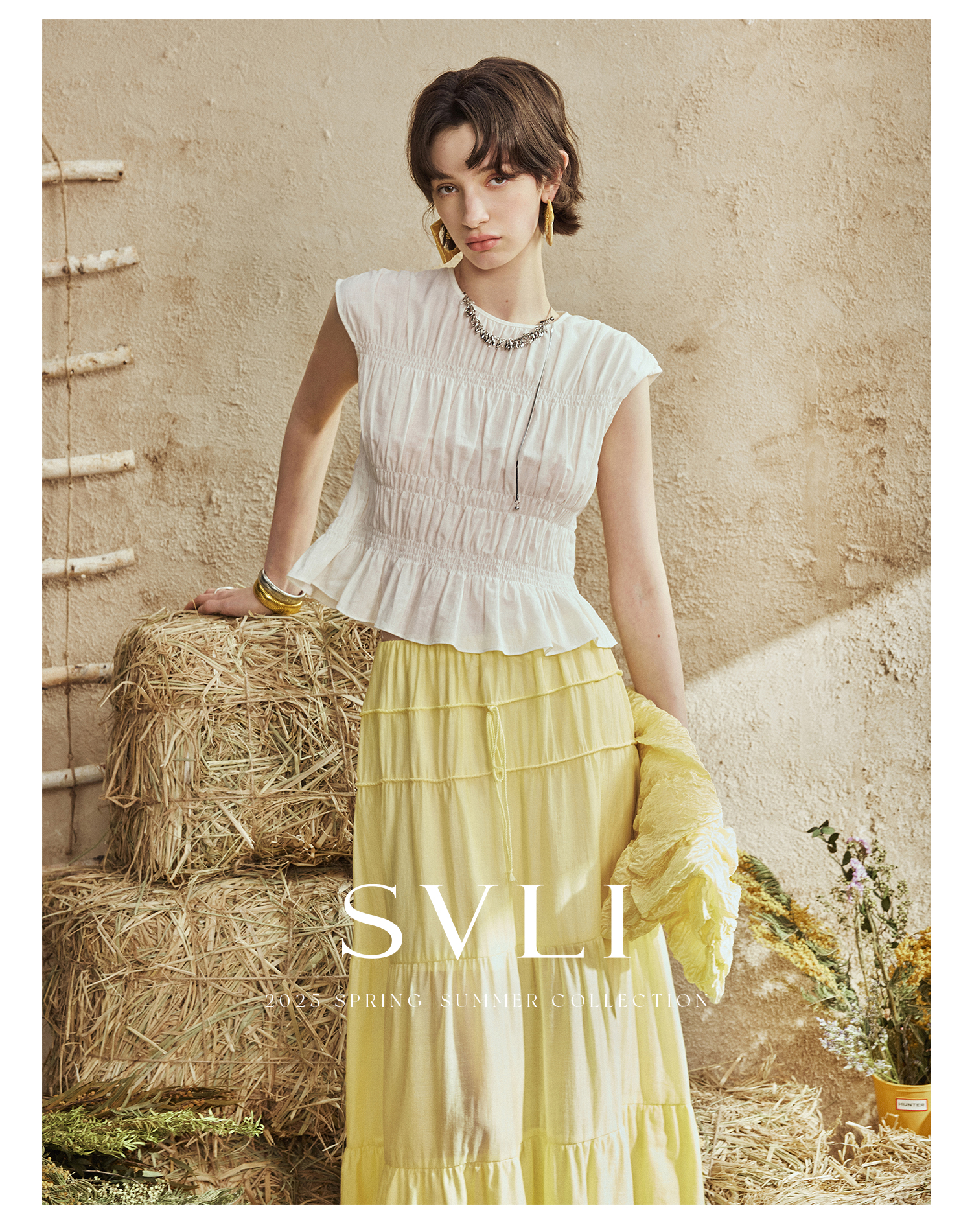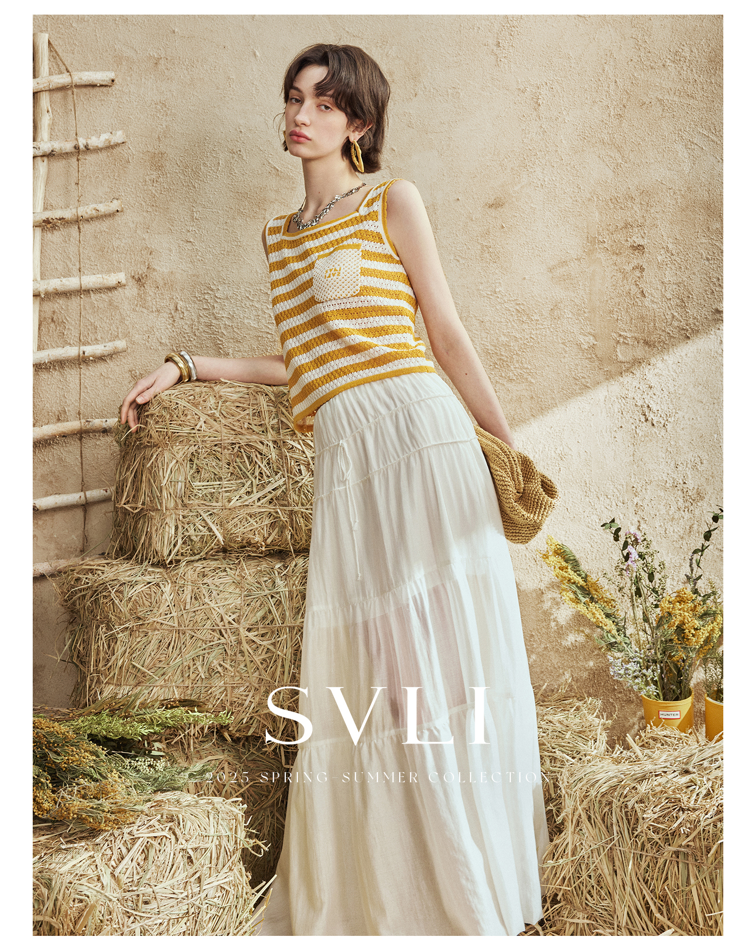 Svli|'Island Romance' Lightweight Lyocell Textured Layered Ruched Tie A-Line Long Skirt
