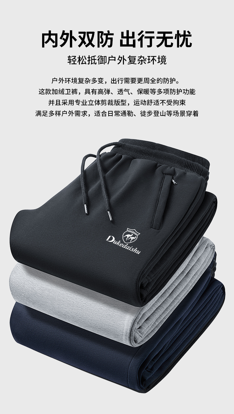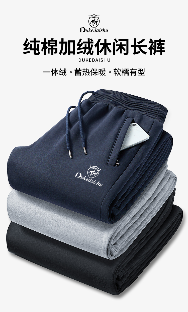 Duke Kangaroo High-End Brand 2025 New Autumn and Winter Sweatpants Men's Winter Pure Cotton Sports Pants Fleece-Lined Casual Pants