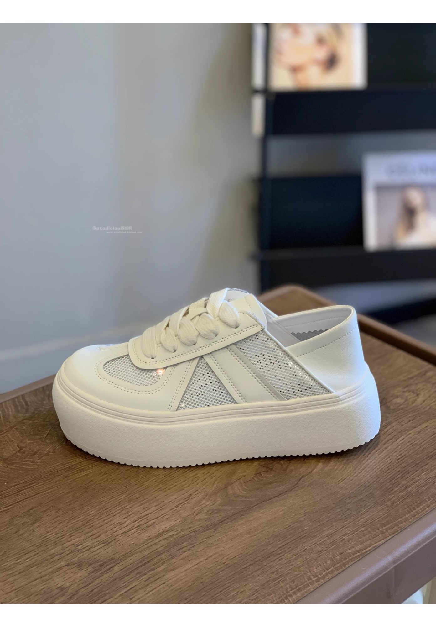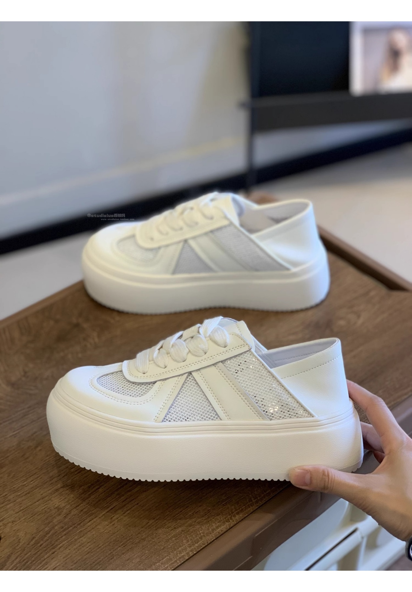 Hong Kong Genuine Leather White Sneakers for Women 2025 Spring and Autumn New Versatile Thick-Soled Popular Hollow Breathable Slip-On Two-Way Sneakers