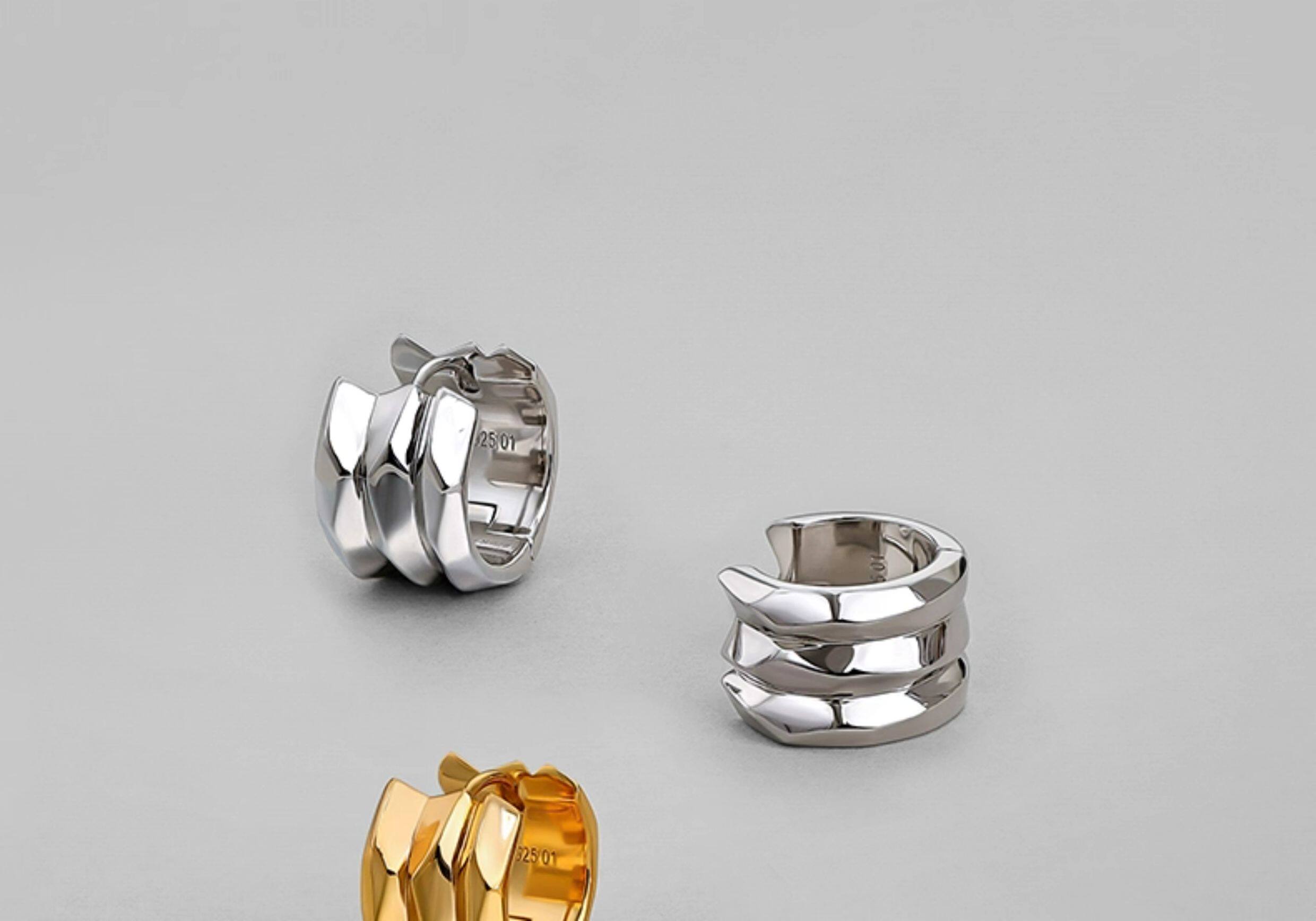 White Mist Three-Circle Mirror Light Earrings 925 Silver Women's Earrings Ear Accessories Ear Studs New Niche Light Luxury Design Ed4568