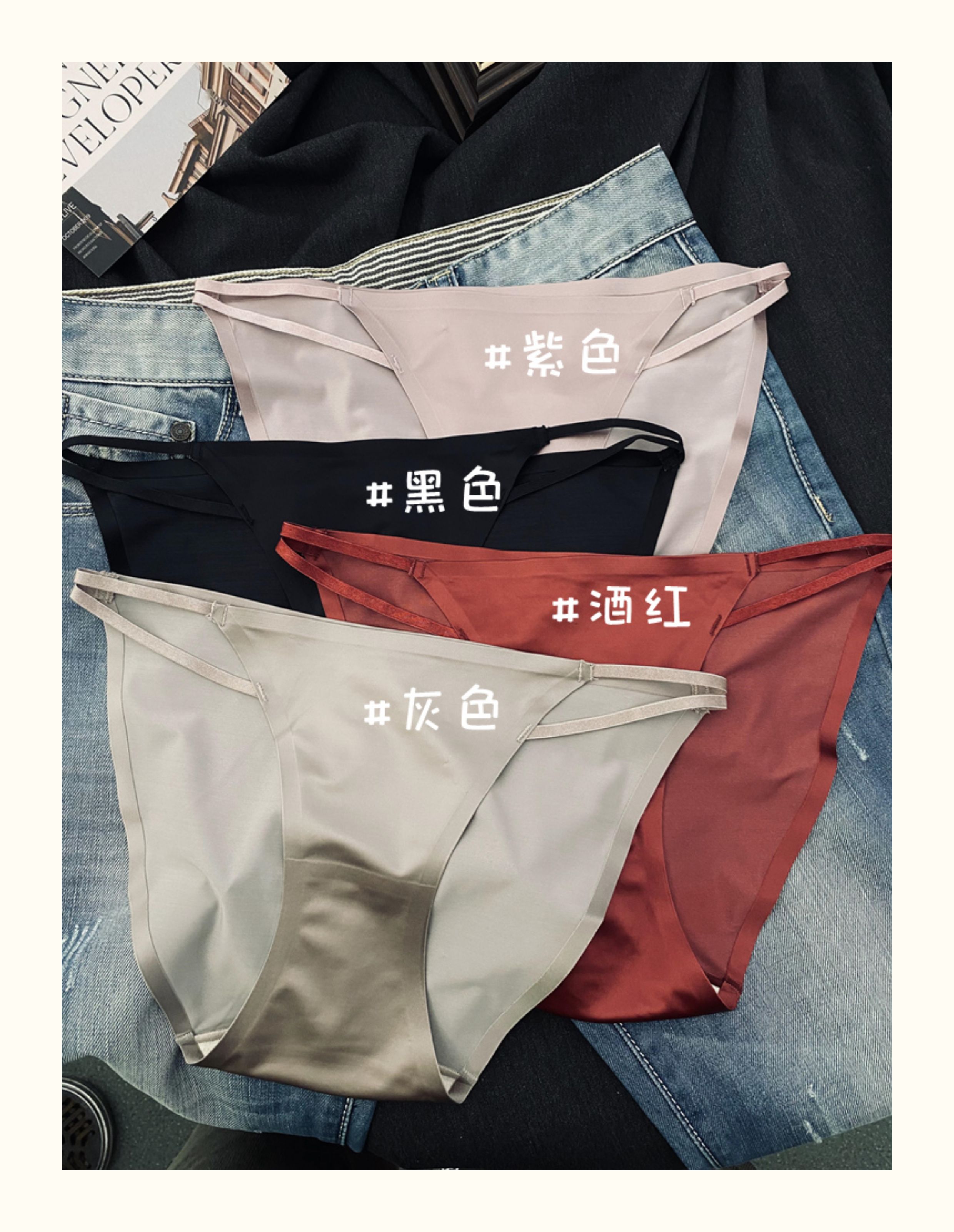 100% Mulberry Silk Crotch 7A Antibacterial Sexy Low-Waist Women's Silk Crotch Panties Japanese Style Strap Seamless Ice Silk
