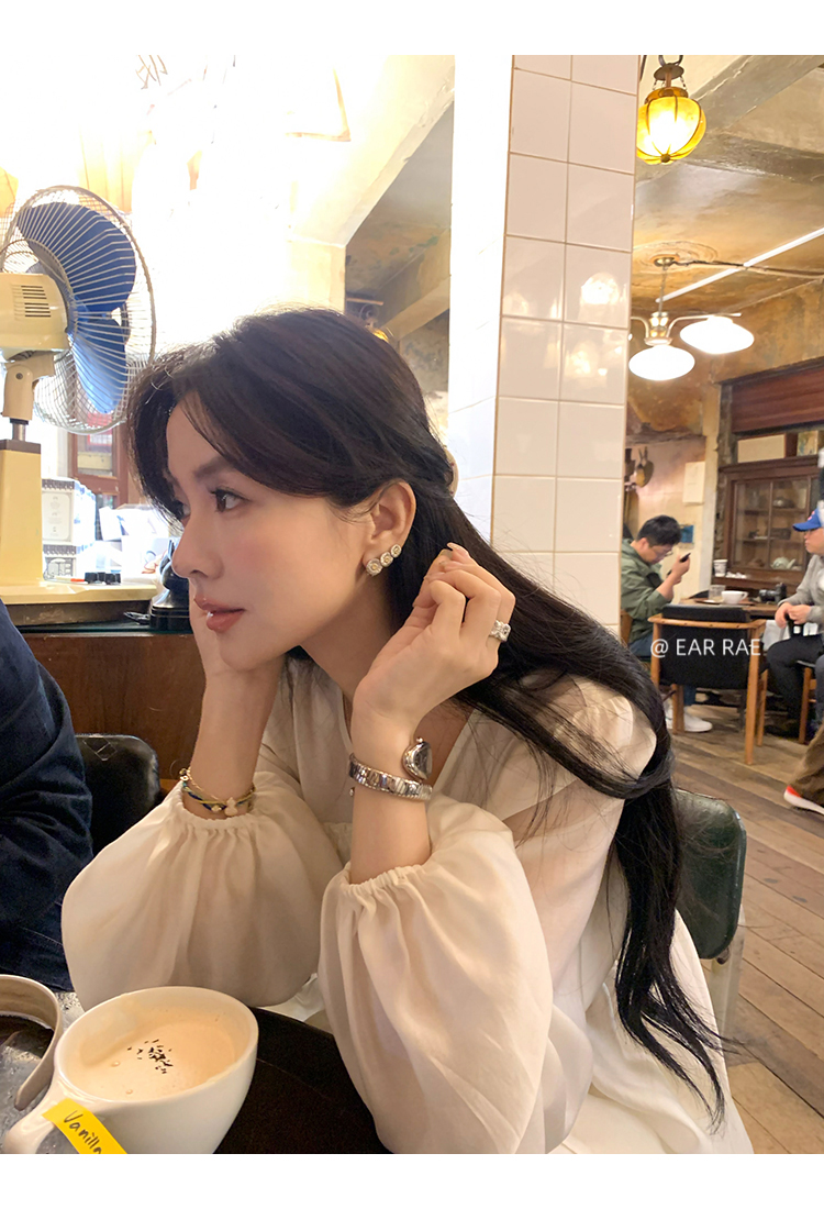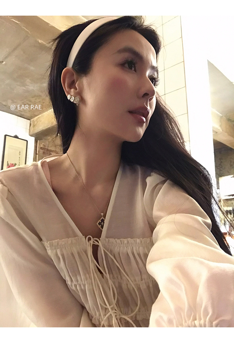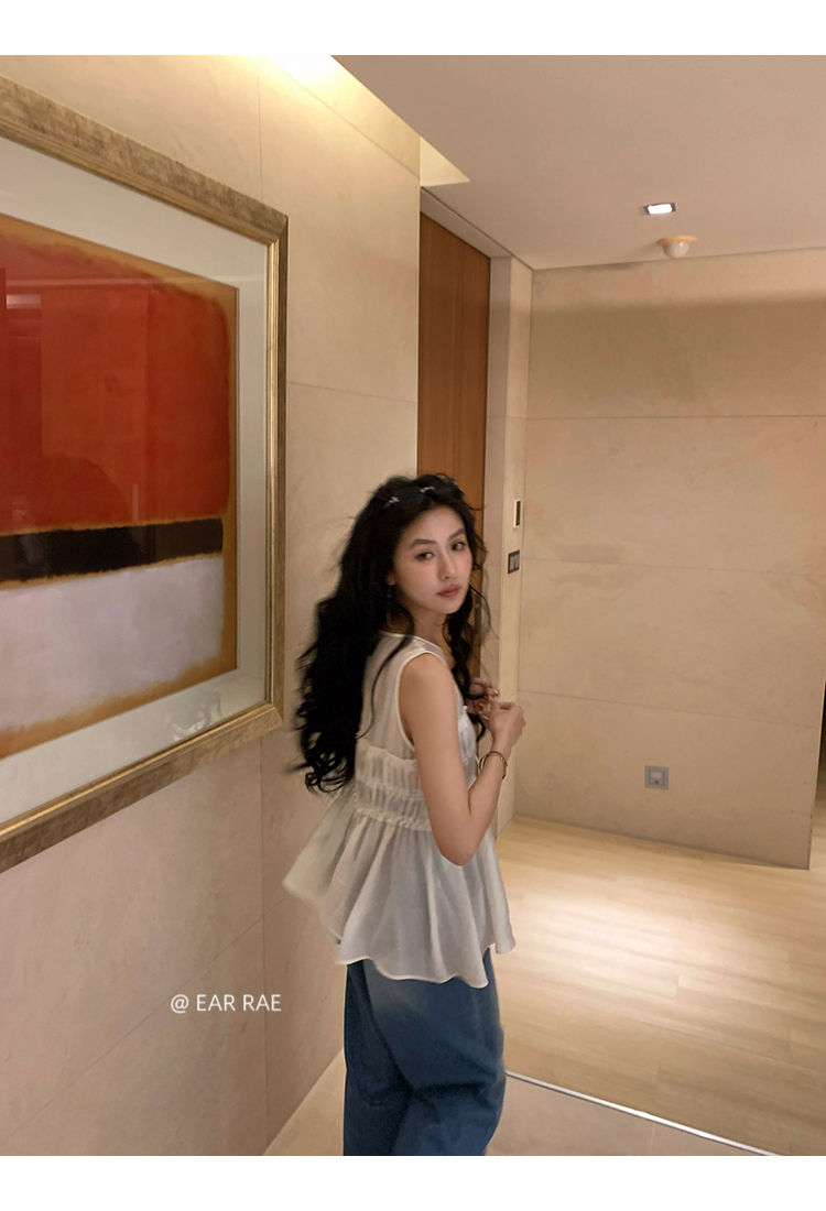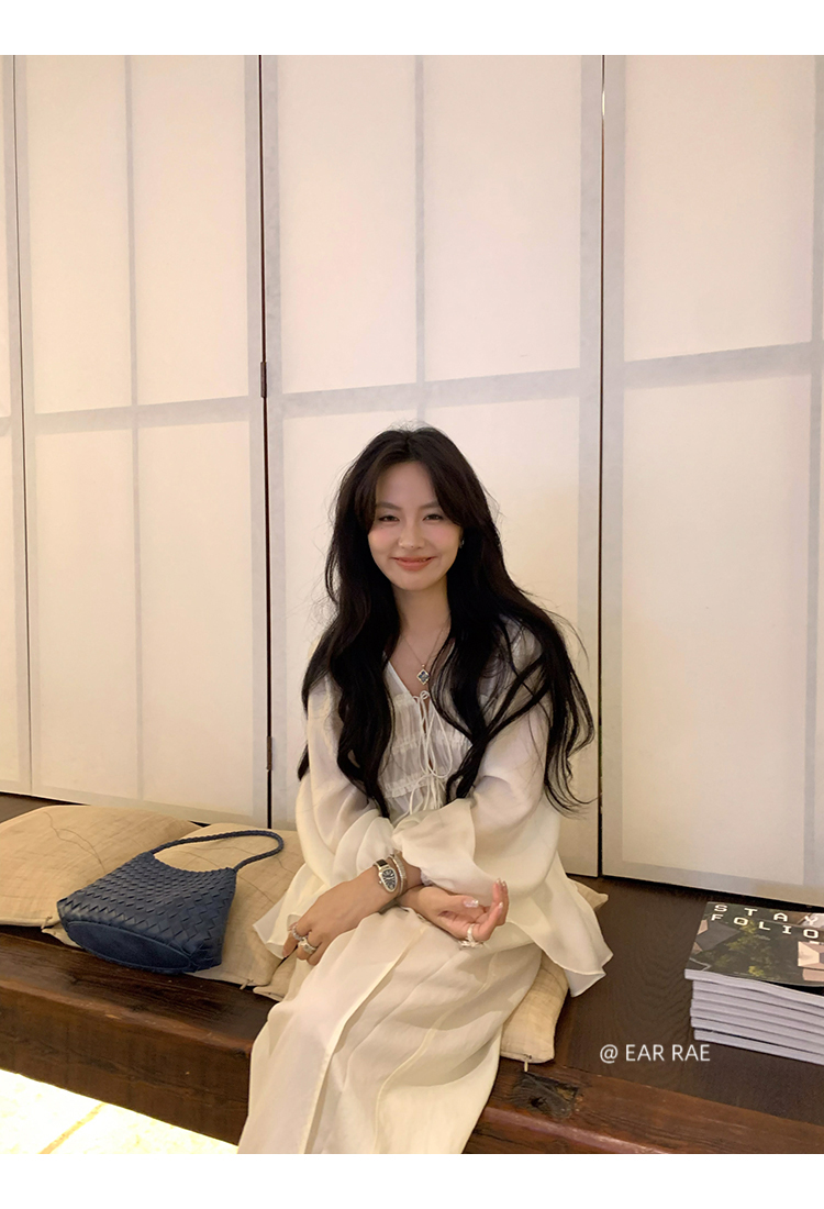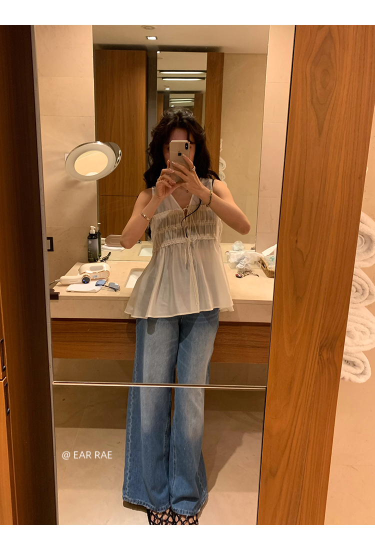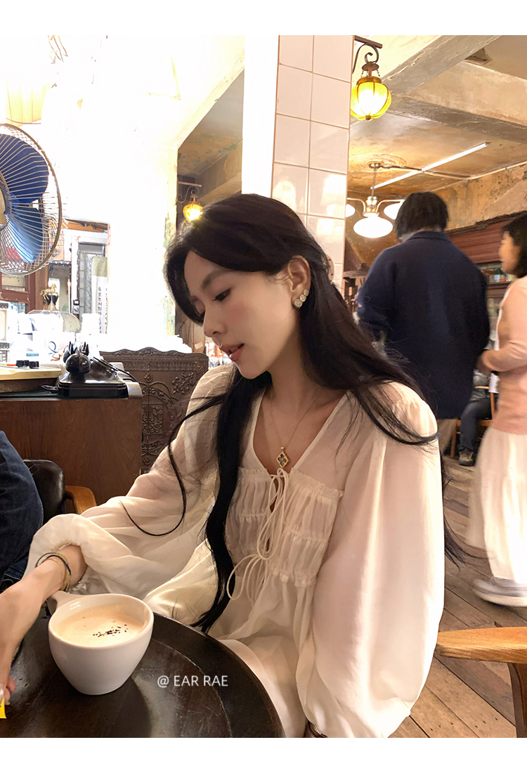 Ear Rae Summer Shimmering Lyocell Tencel Ruched Tie V-Neck Blouse Elegant Long-Sleeve Sleeveless Top