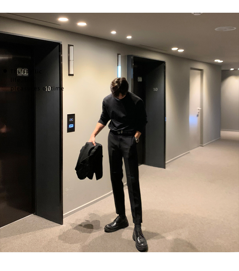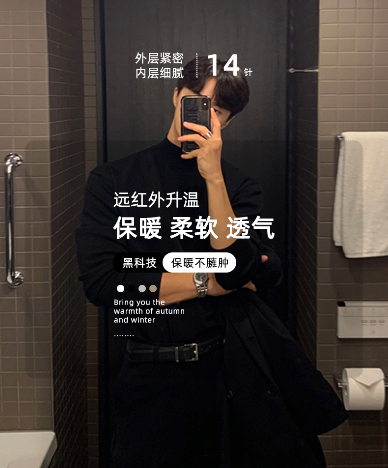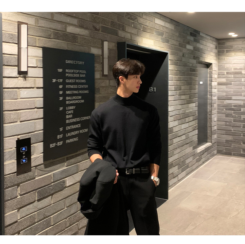 Autumn and Winter Black Half-Turtleneck Sweater for Men, Hong Kong Style, Solid Color, Warm, Casual, Slim-Fit, Base Knit Sweater