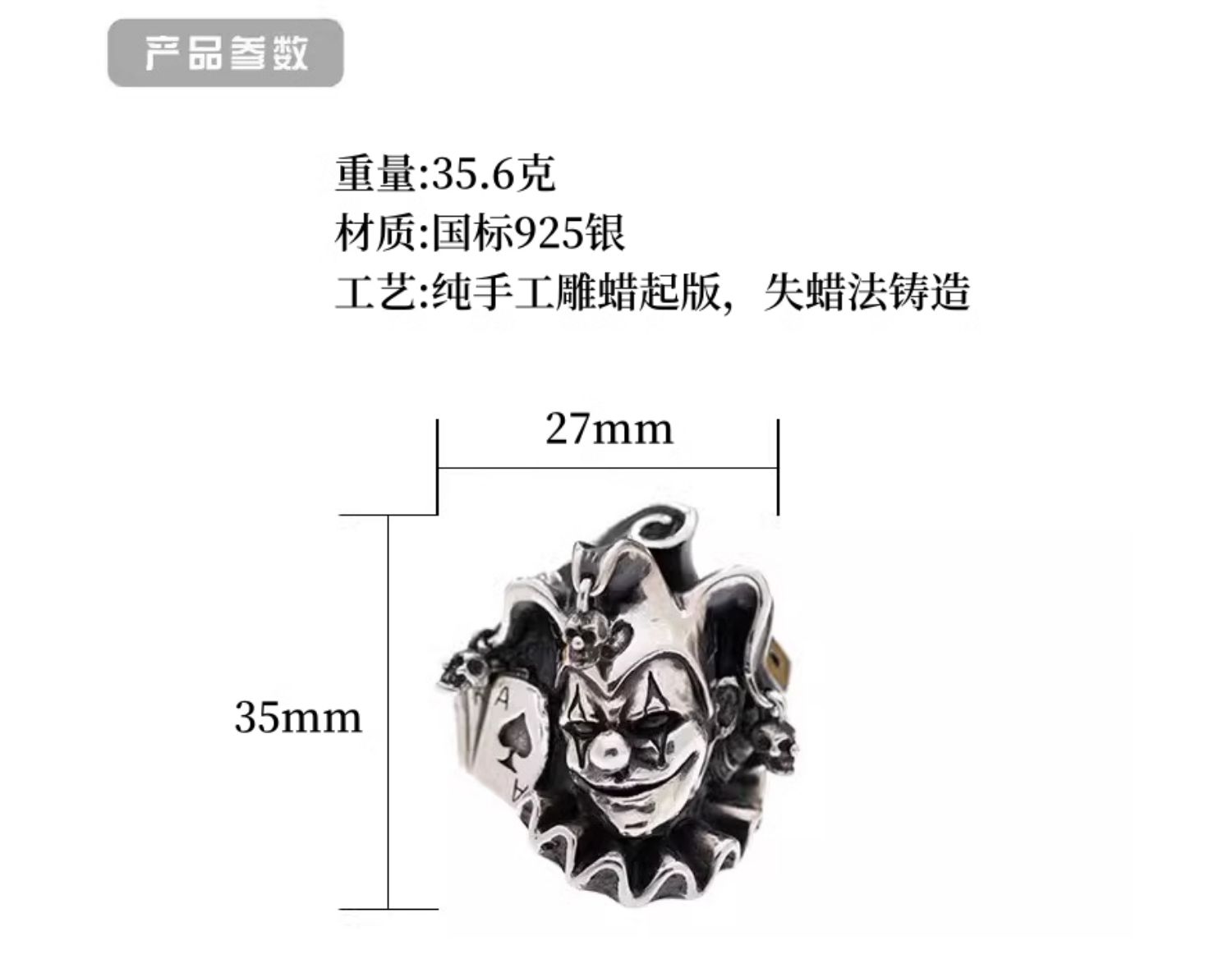 Raven Studio Original Exclusive European and American Clown Ring Handmade 925 Silver Jewelry Joker Personalized Trendy Ring
