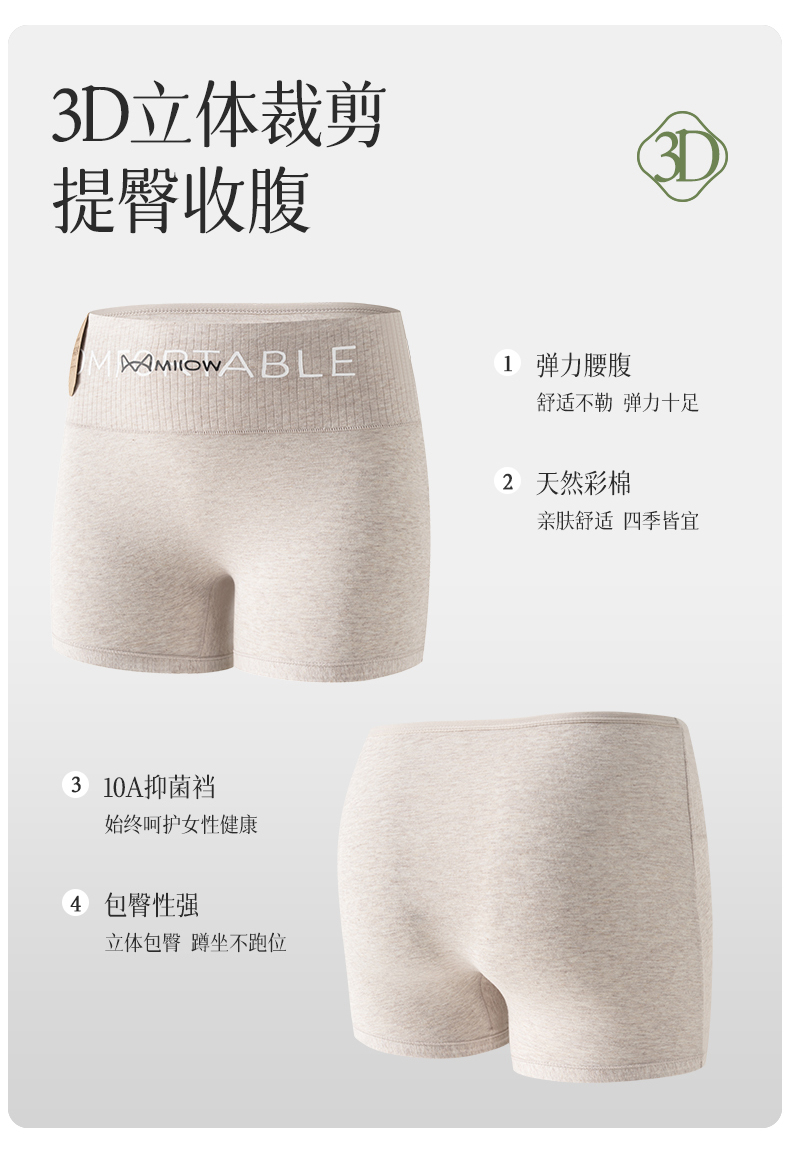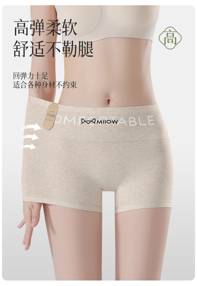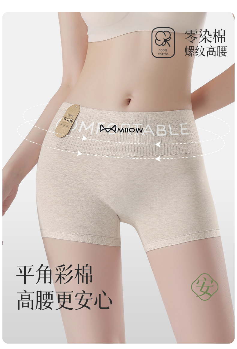 Catman Pure Cotton Women's Seamless Tummy Control Butt-Lifting Non-Curling Leggings Summer Thin Safety Shorts Three-In-One