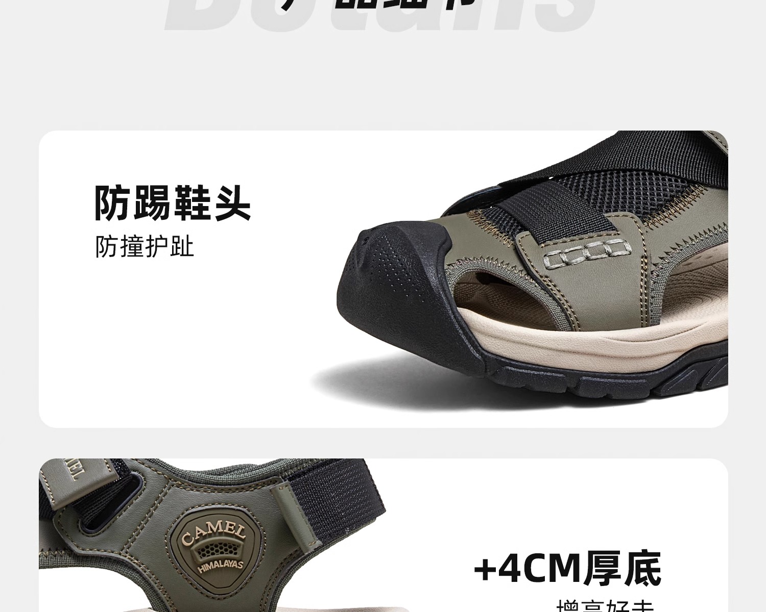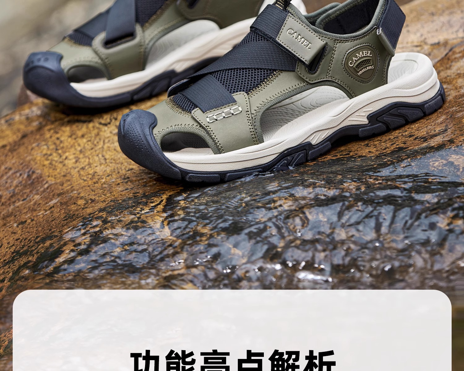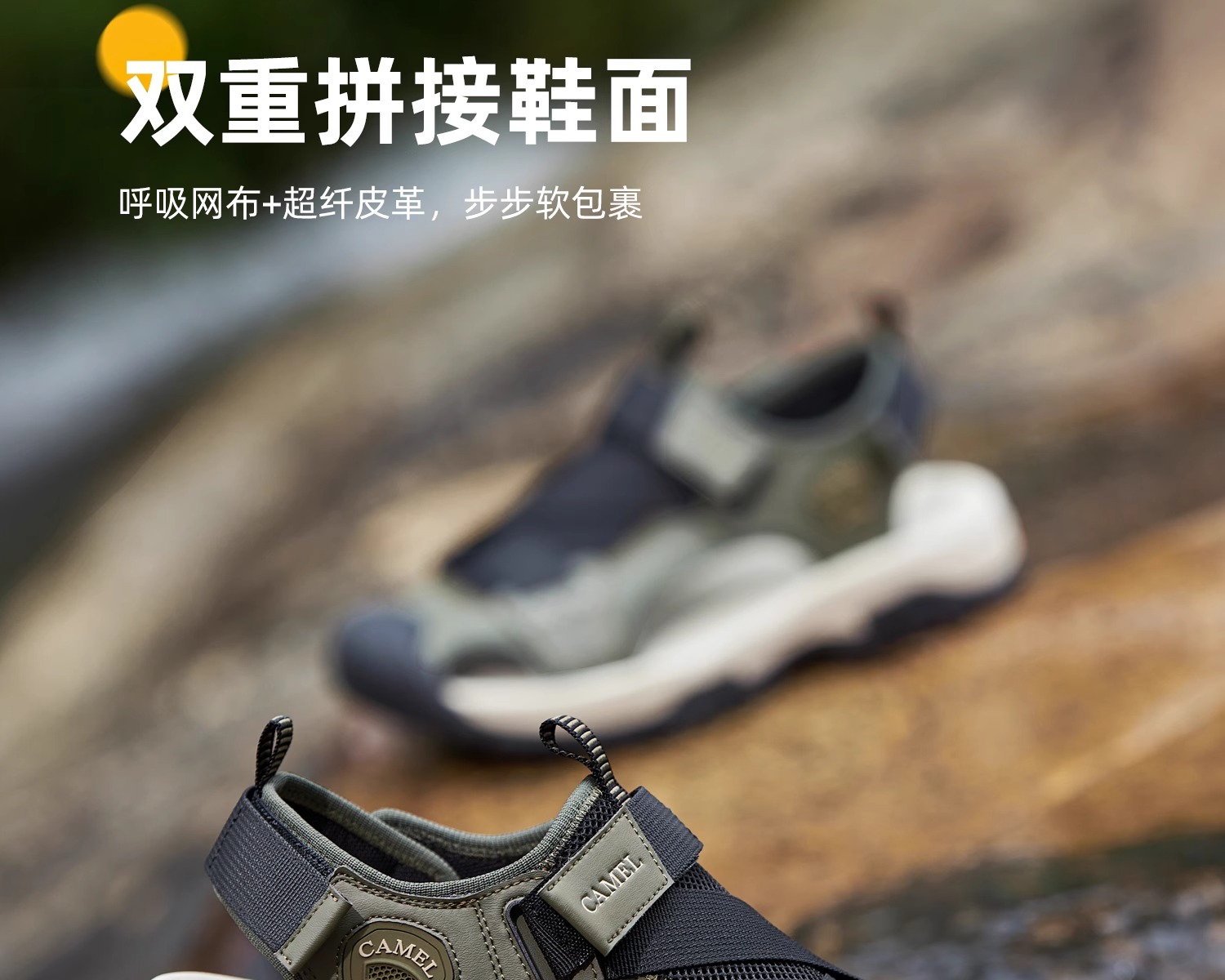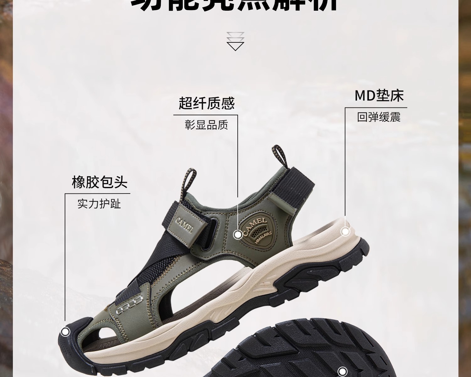 Camel Men's Sandals 2025 Summer New Breathable Non-Slip Outdoor Closed-Toe Sandals Casual Sports Beach Shoes for Men