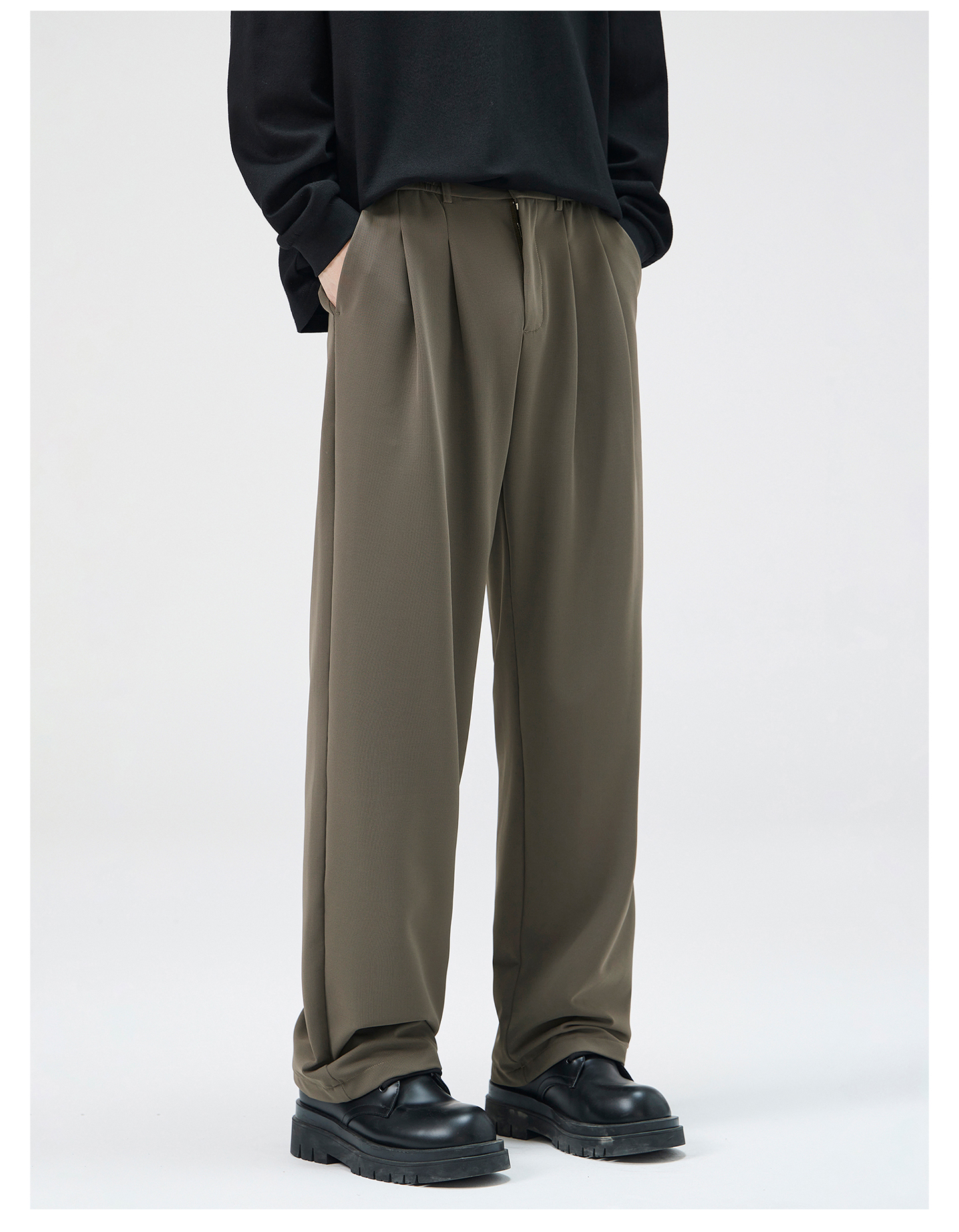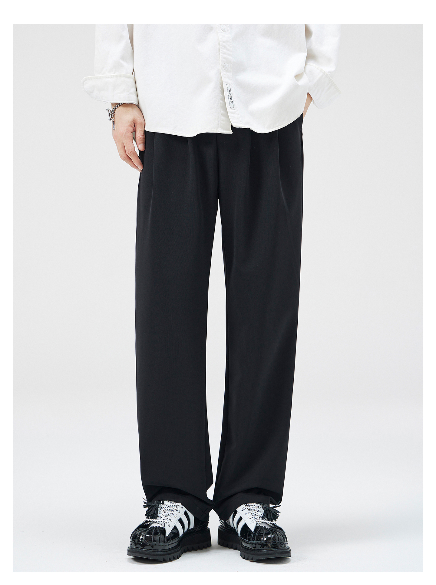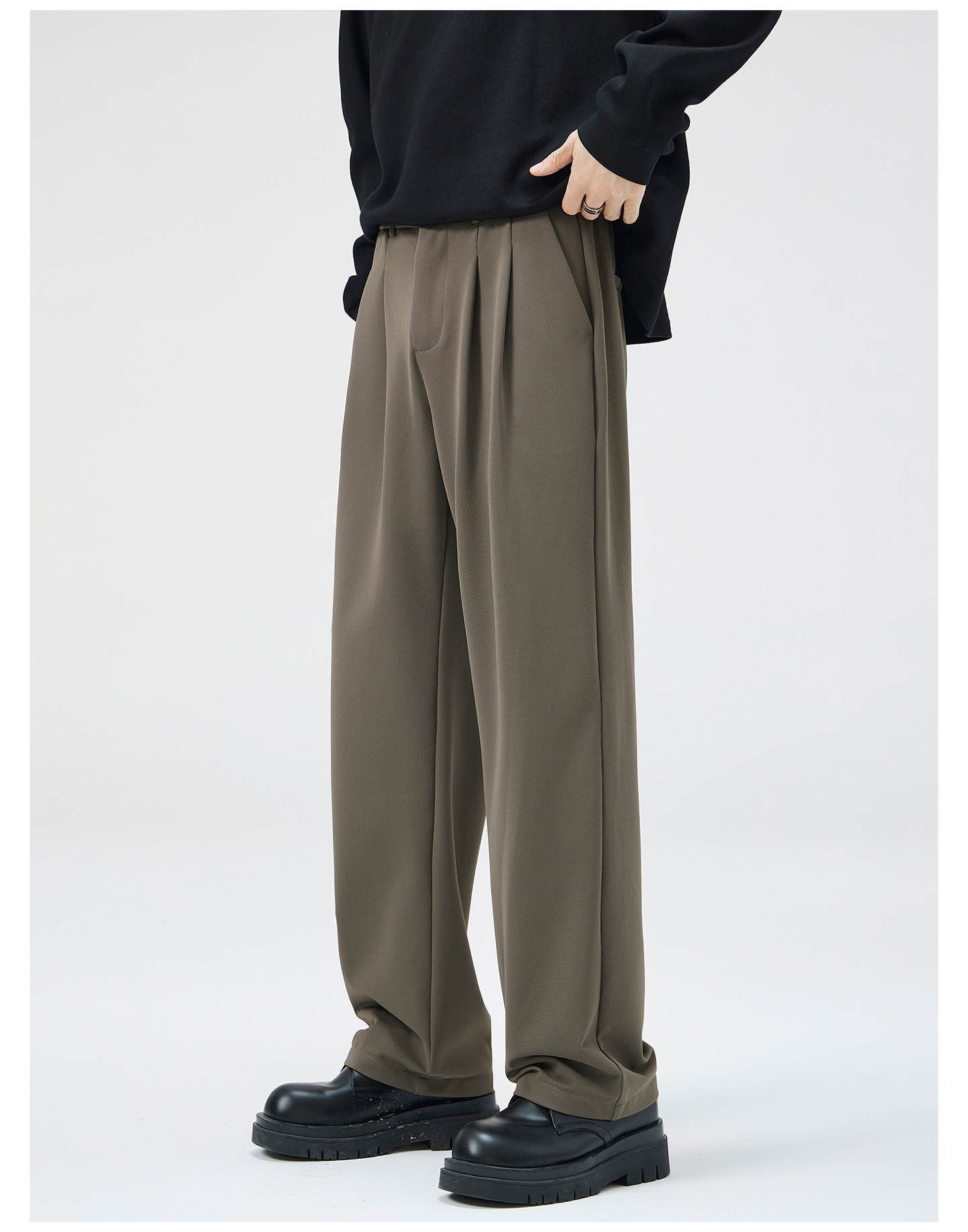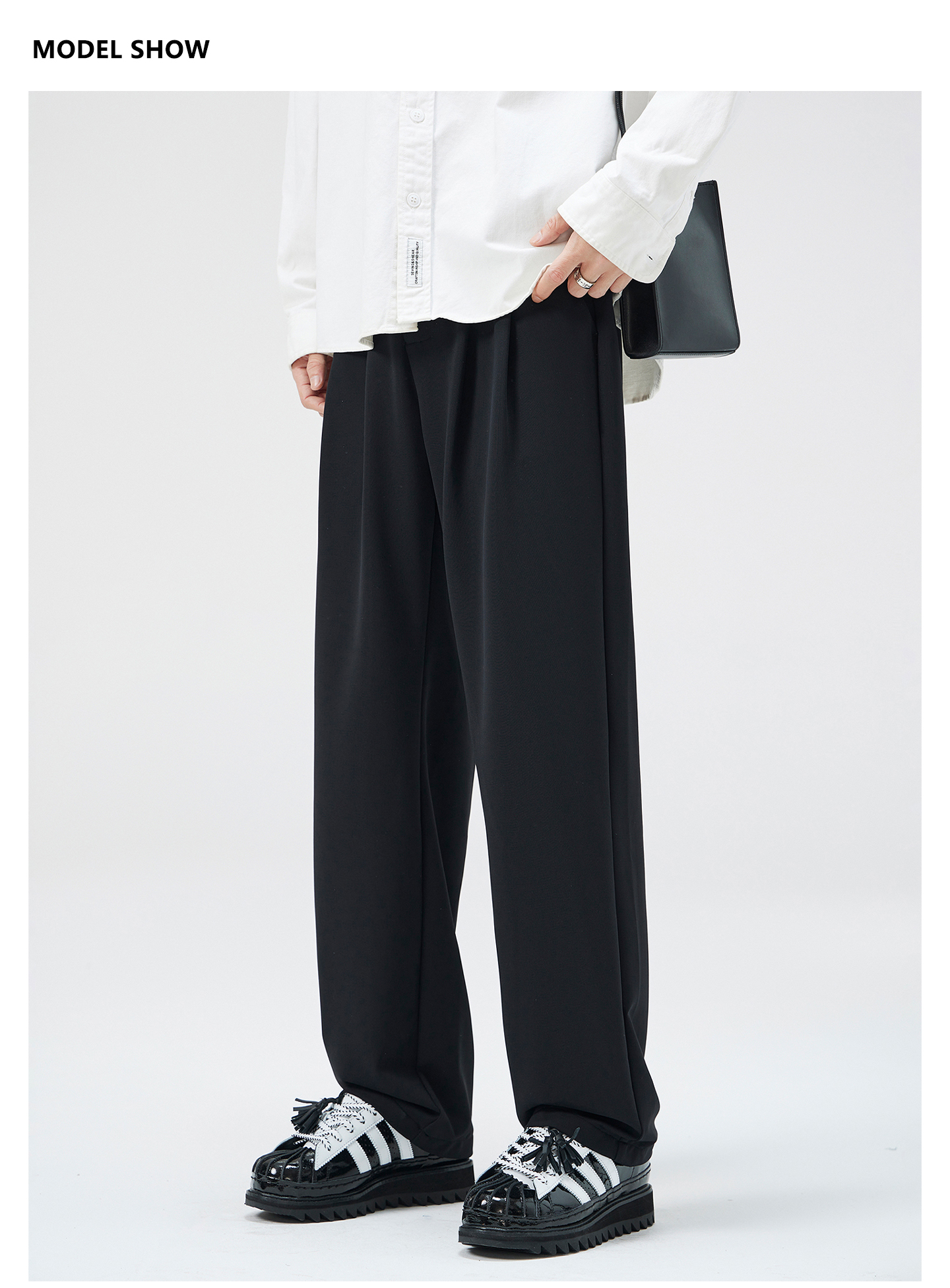 Wuyibai Winter Fleece-Lined 2025 New Men's Loose Drape Black Casual Dress Pants Men's Straight-Leg Trousers