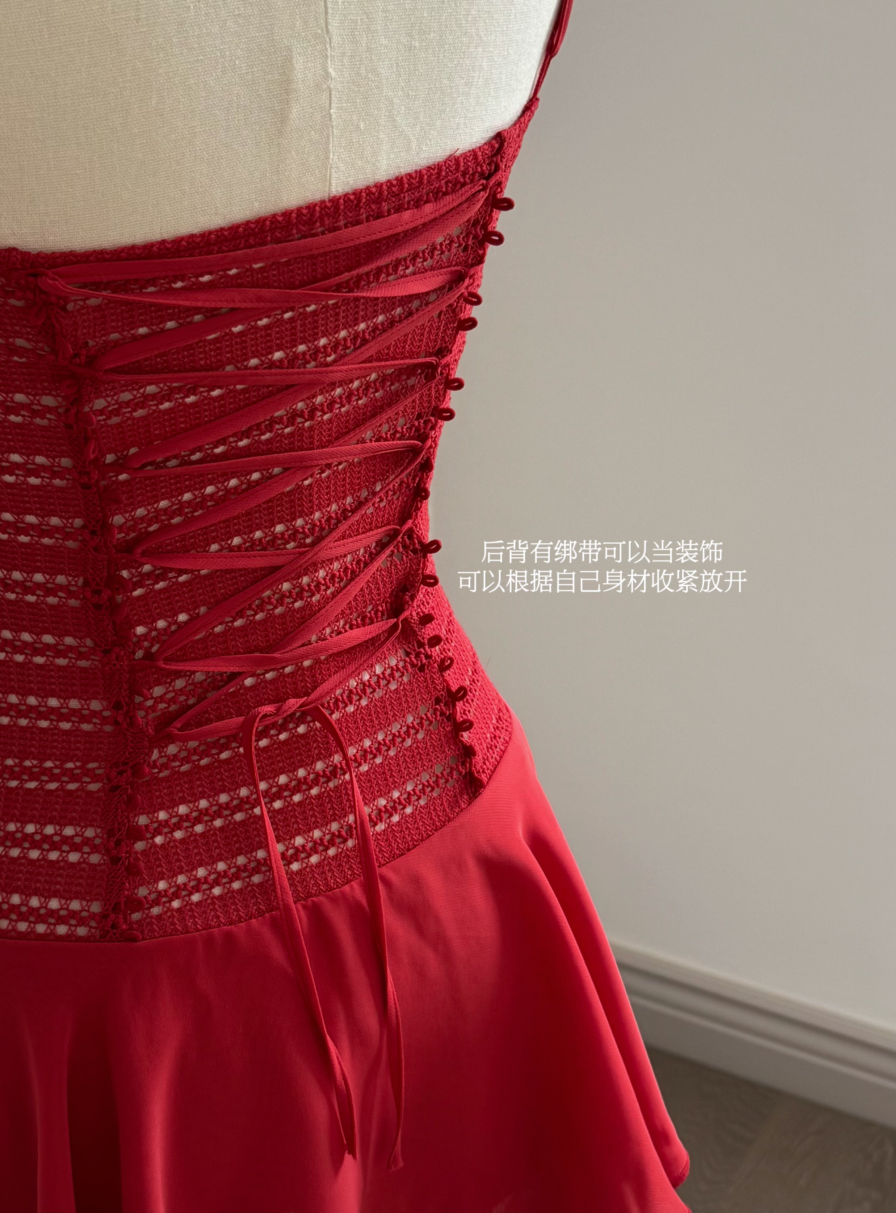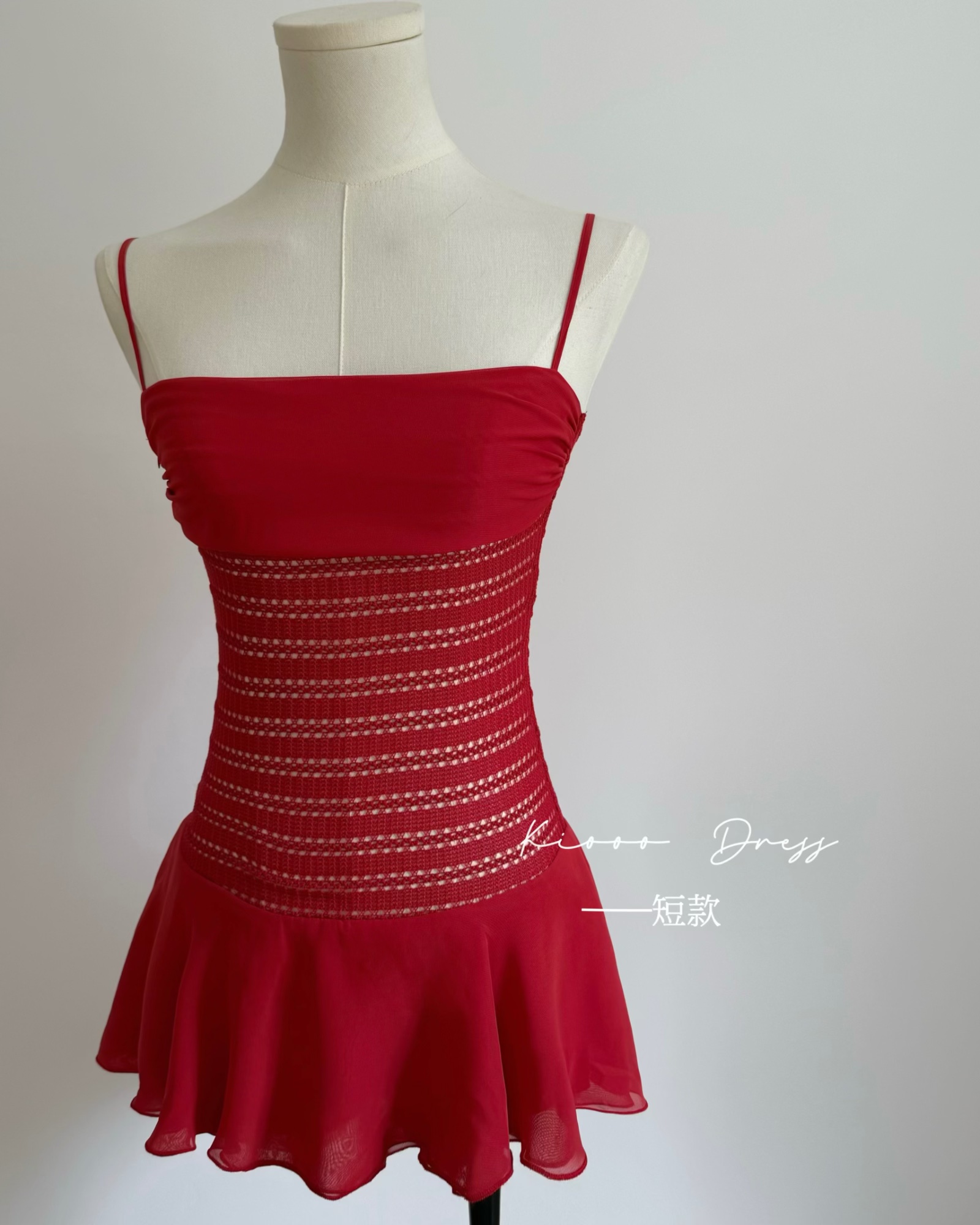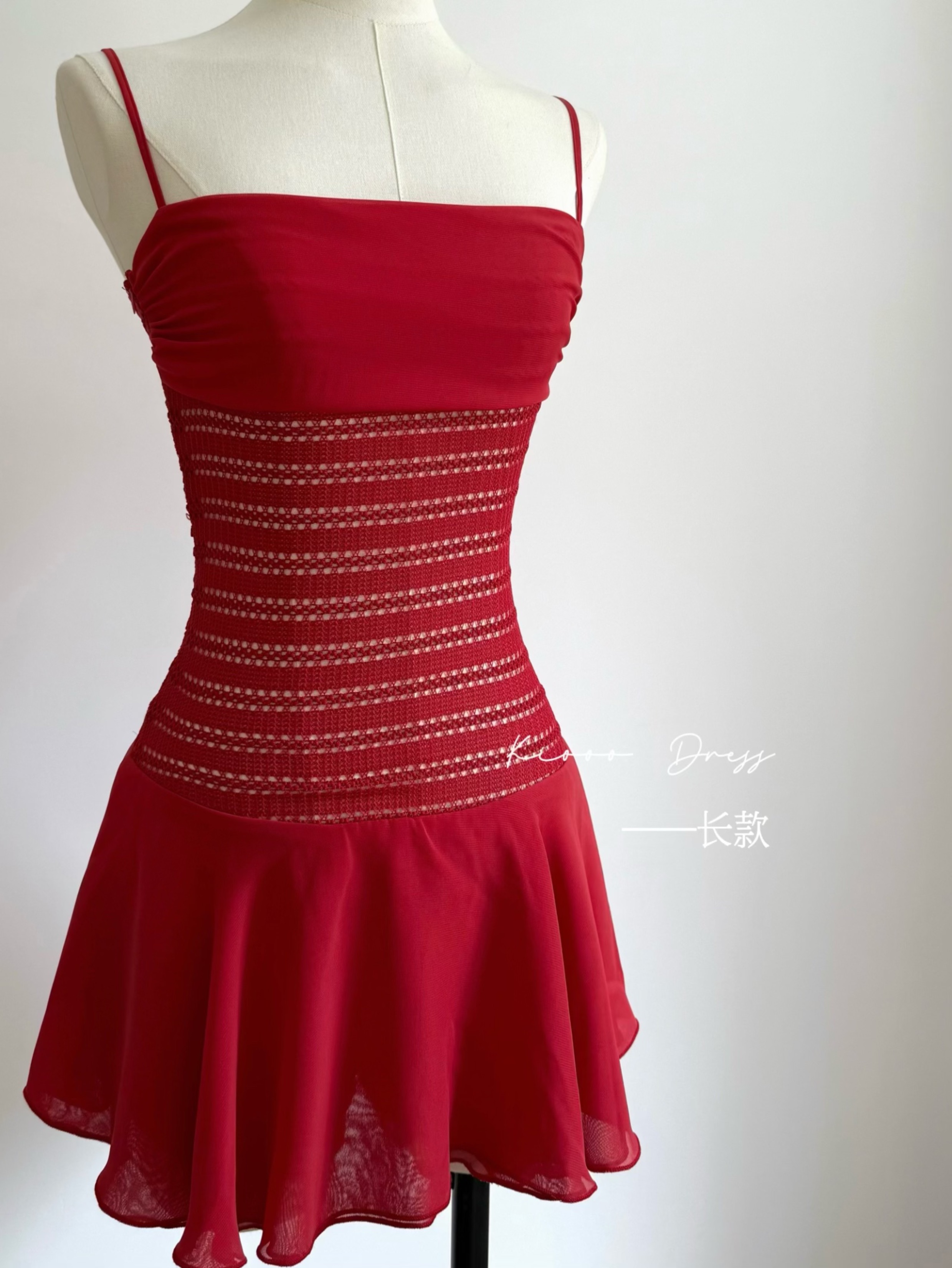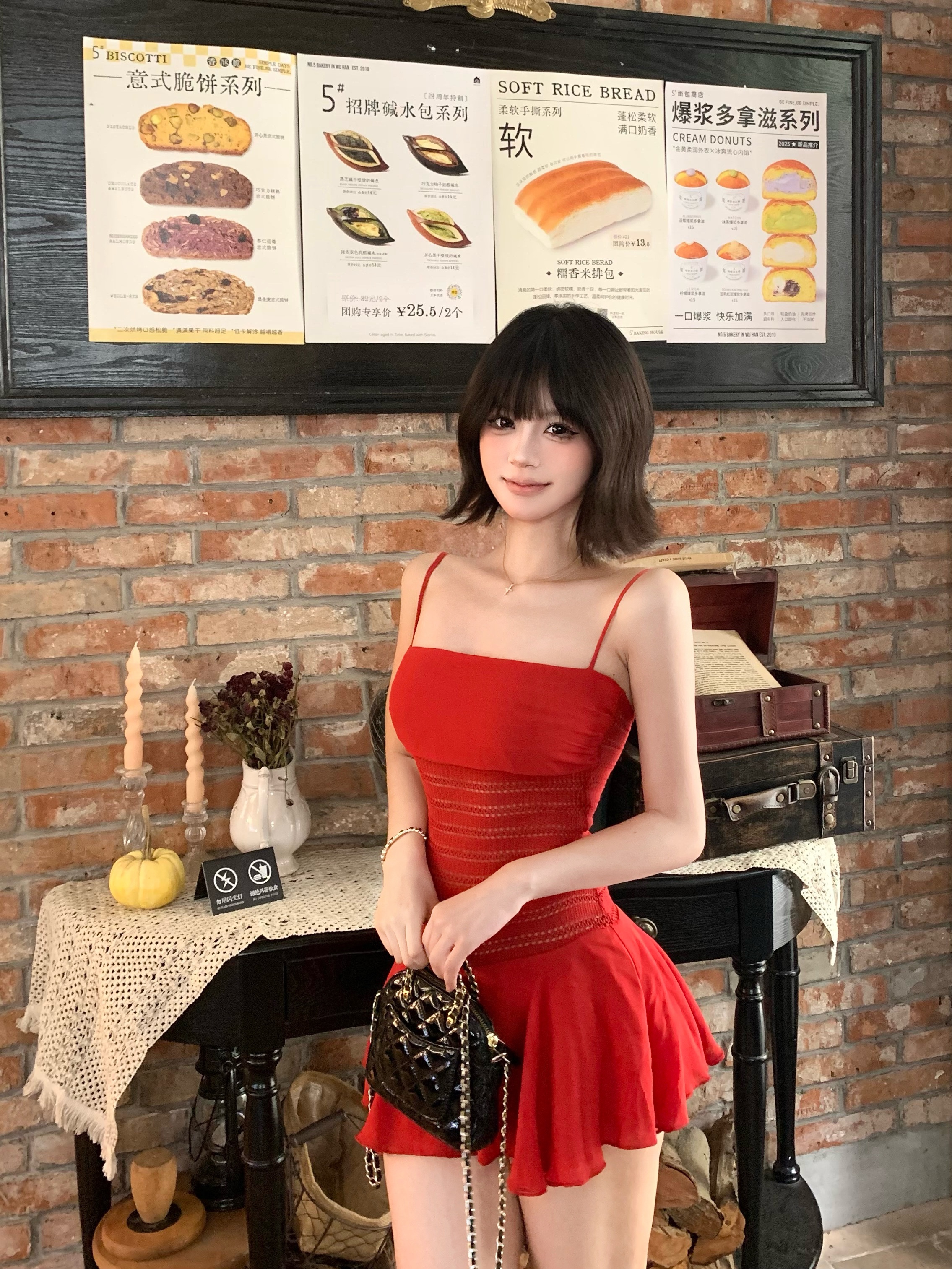 Kiooo Red Raspberry Niche Design French-Style Red Ultra-Short Tight-Fitting Dress