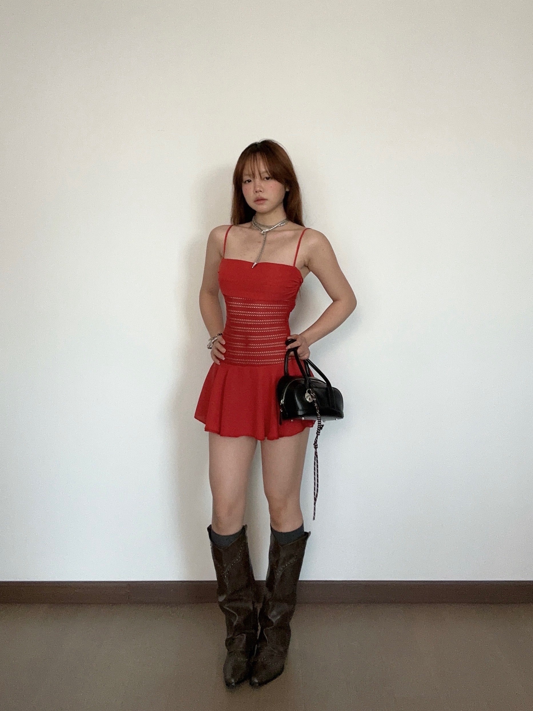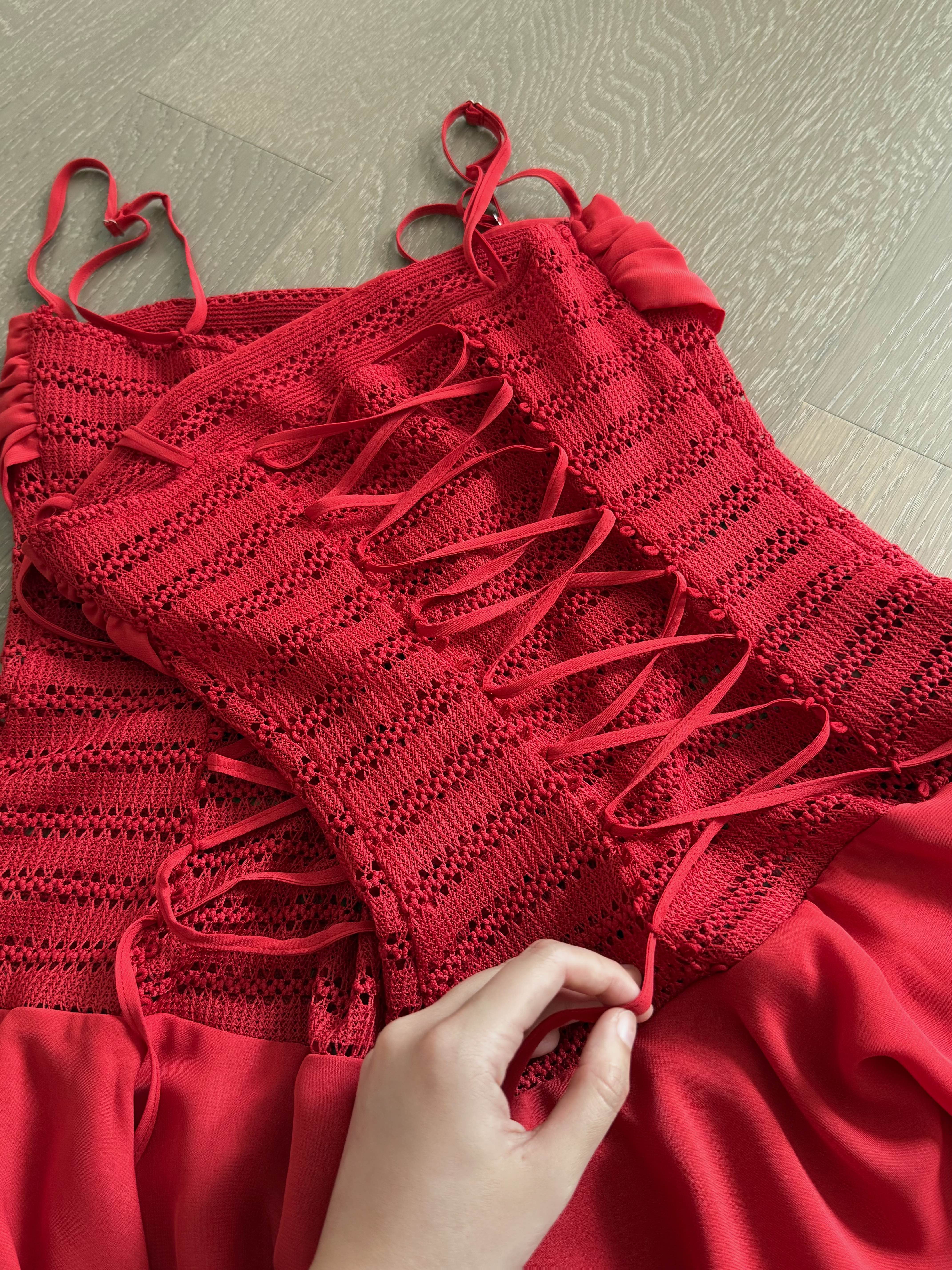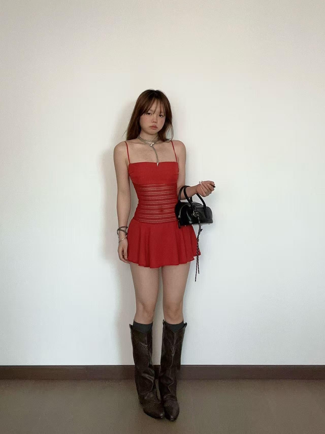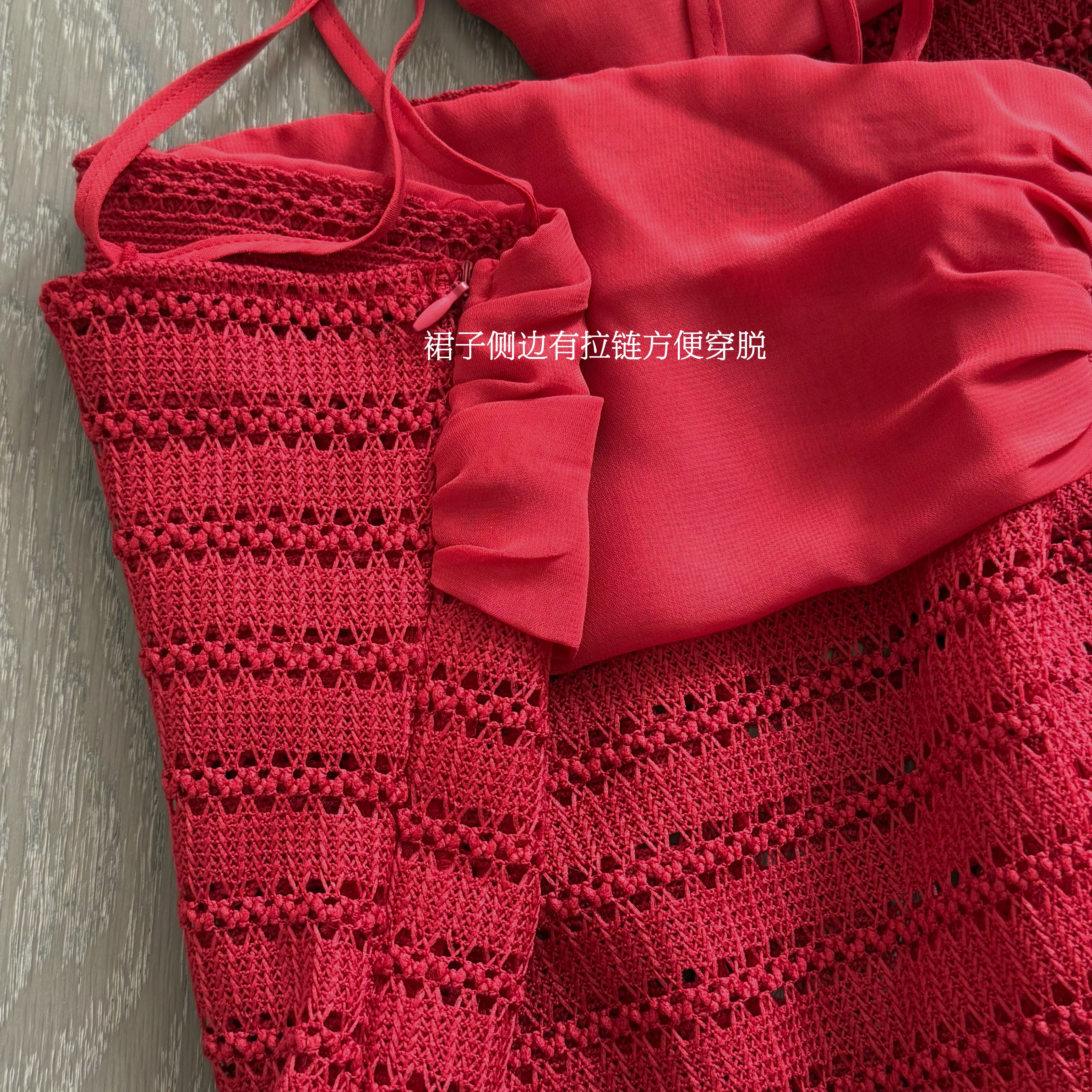Kiooo Red Raspberry Niche Design French-Style Red Ultra-Short Tight-Fitting Dress