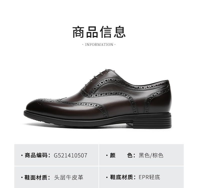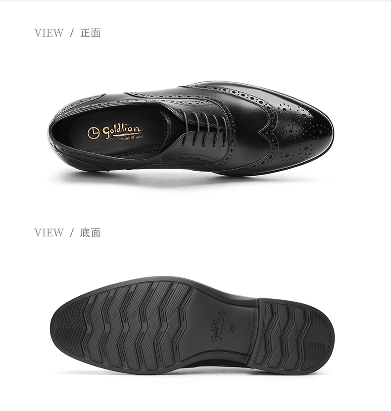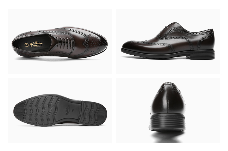 Goldlion Leather Shoes, New Autumn Business Casual Brogue Carved Leather Shoes, Men's Genuine Leather Oxford Groom Wedding Shoes