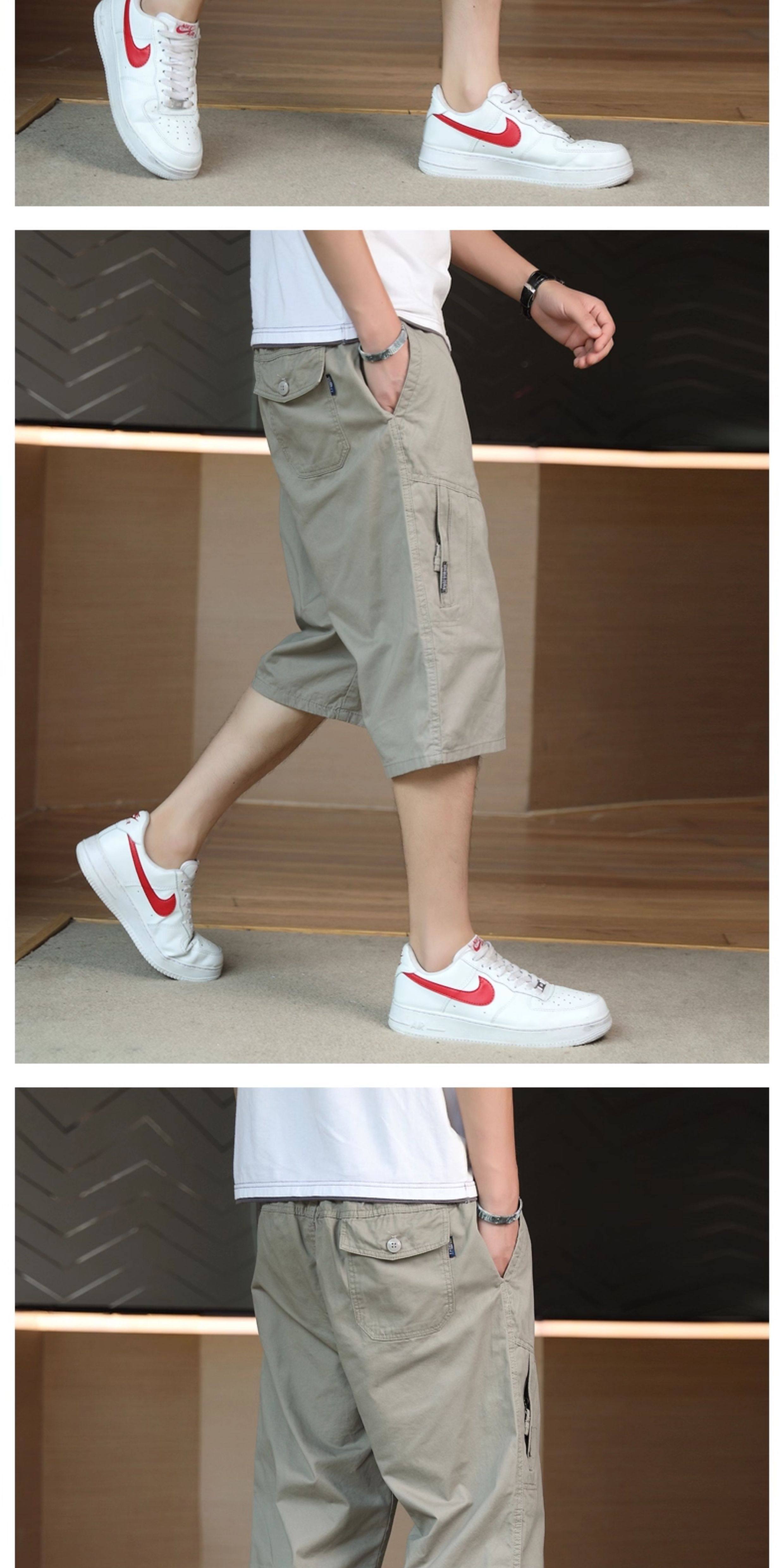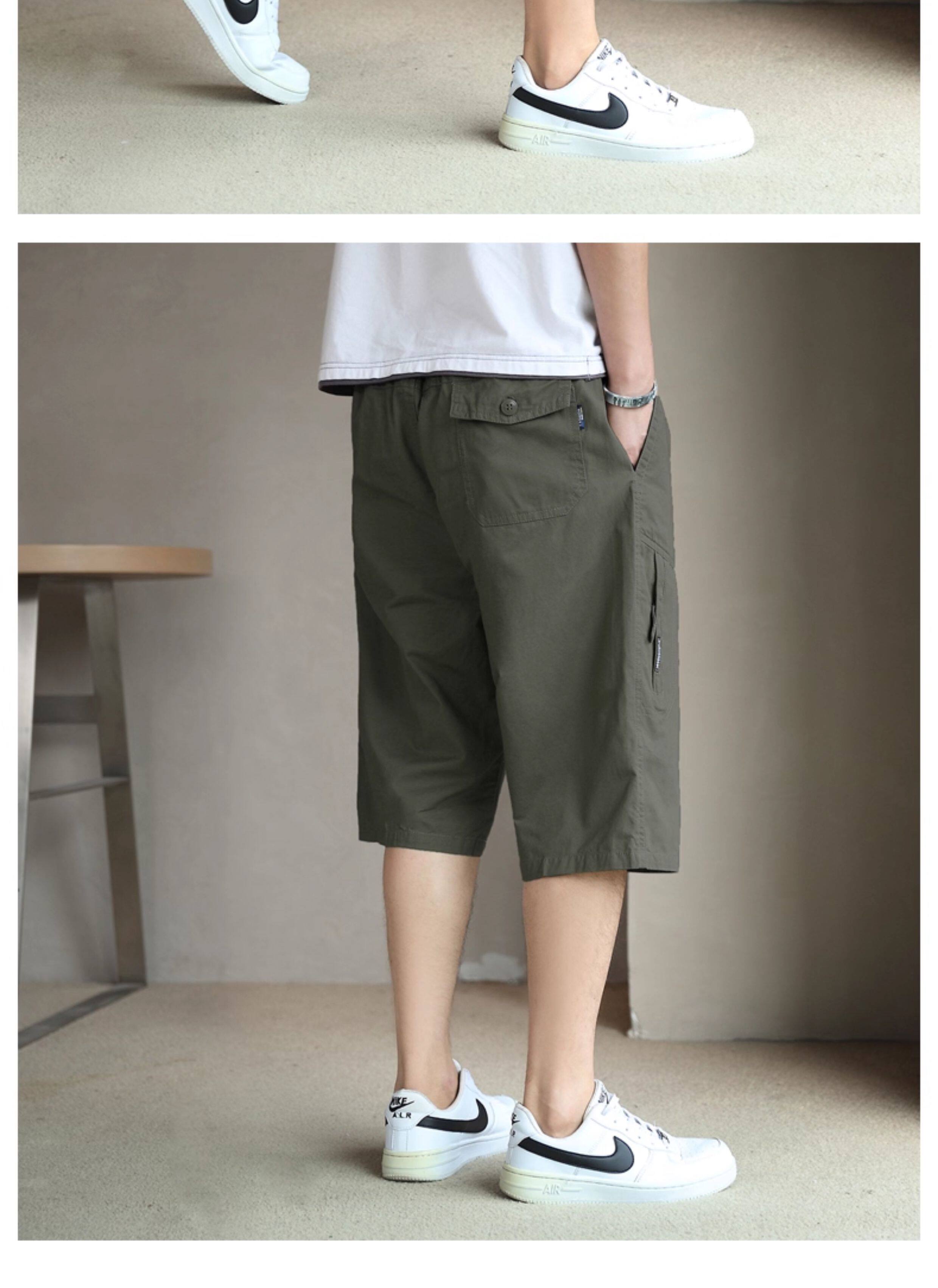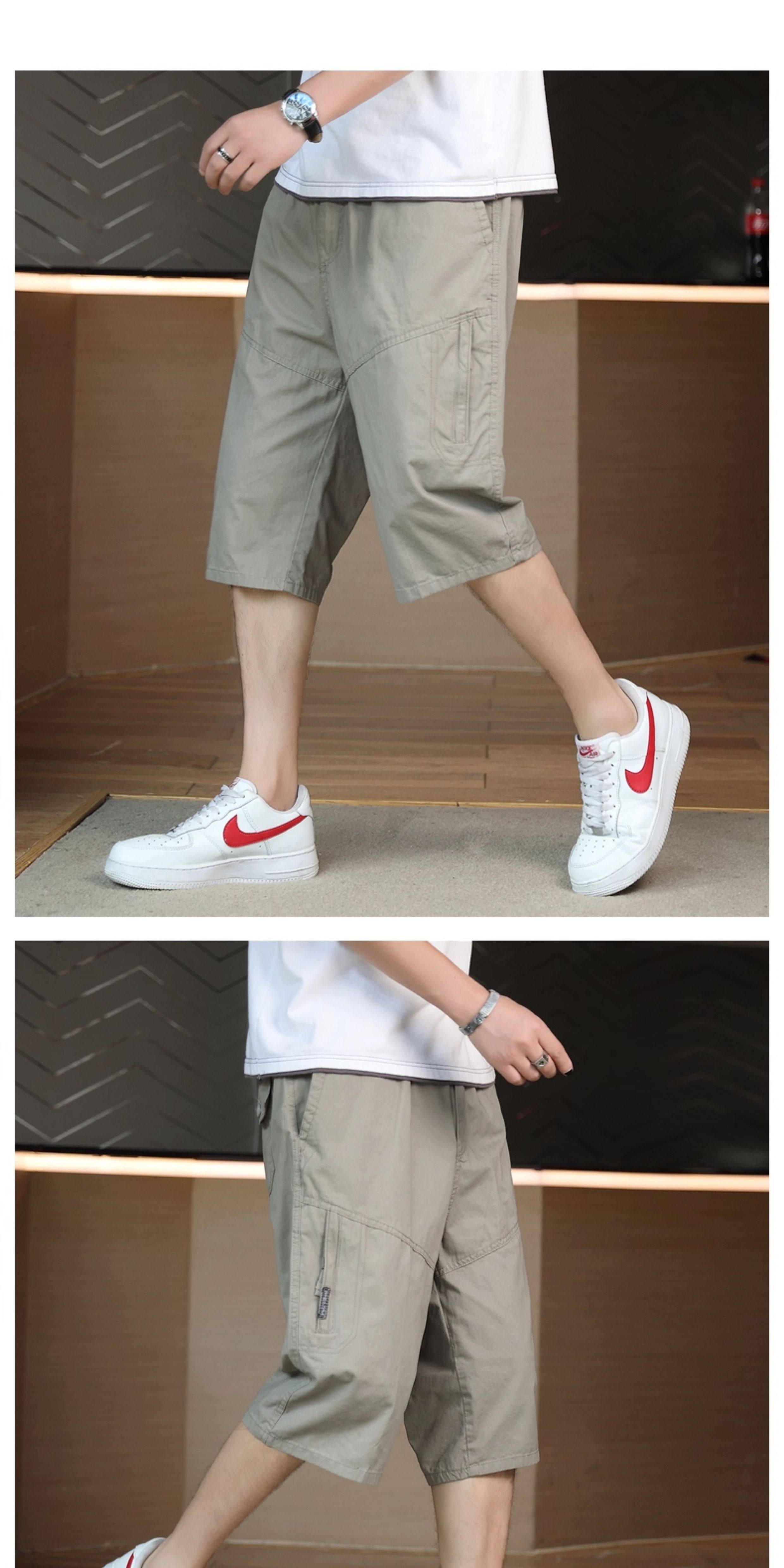 Summer Pure Cotton Cropped Pants Men's Thin Versatile Workwear Casual Six-Point Shorts Men's Straight Large Pants Trendy