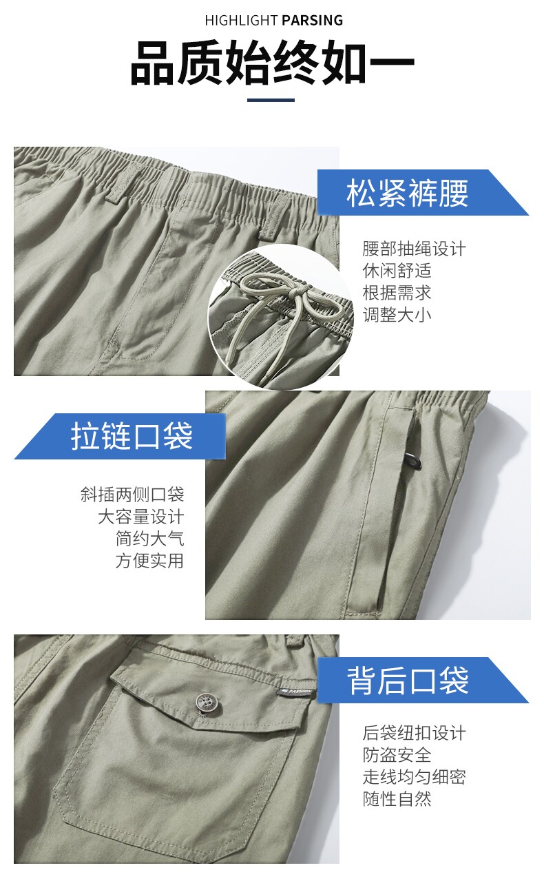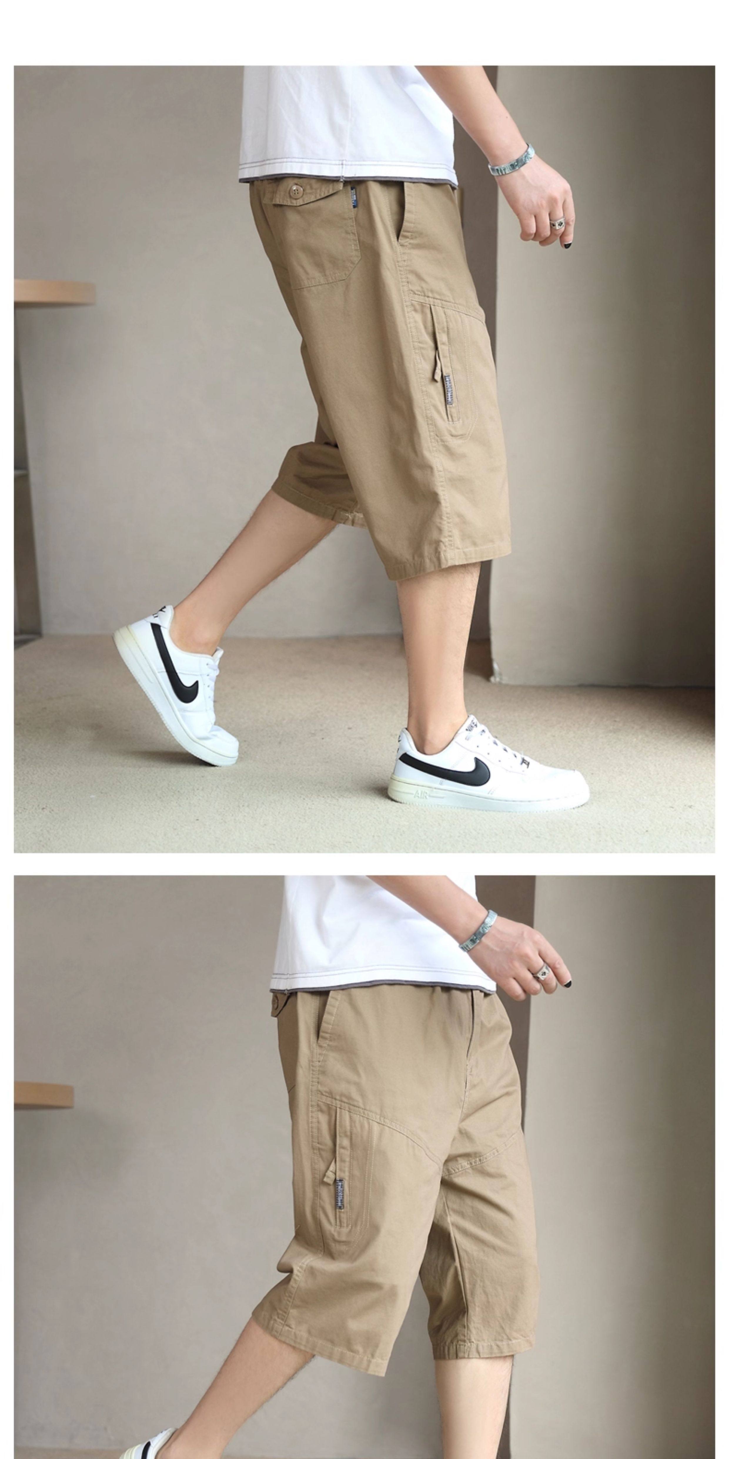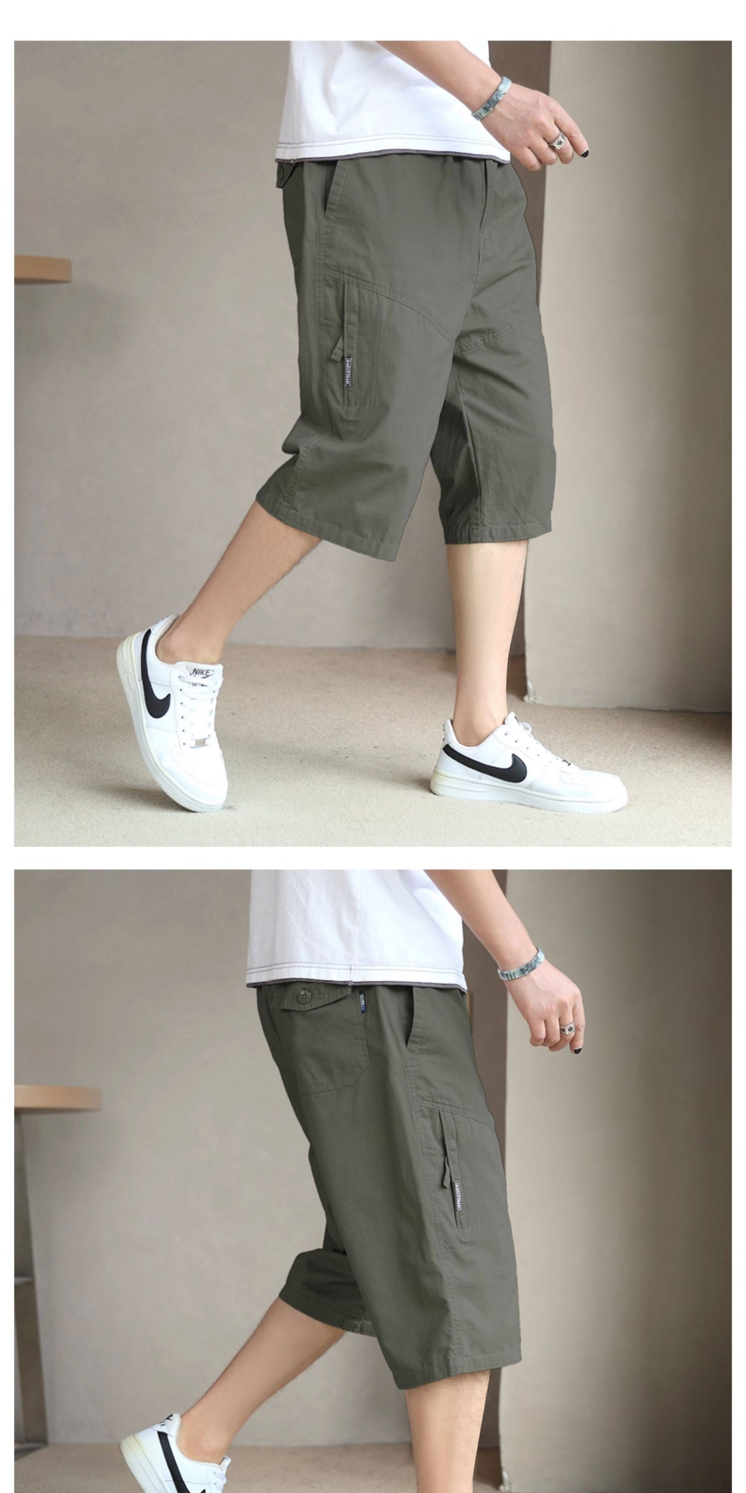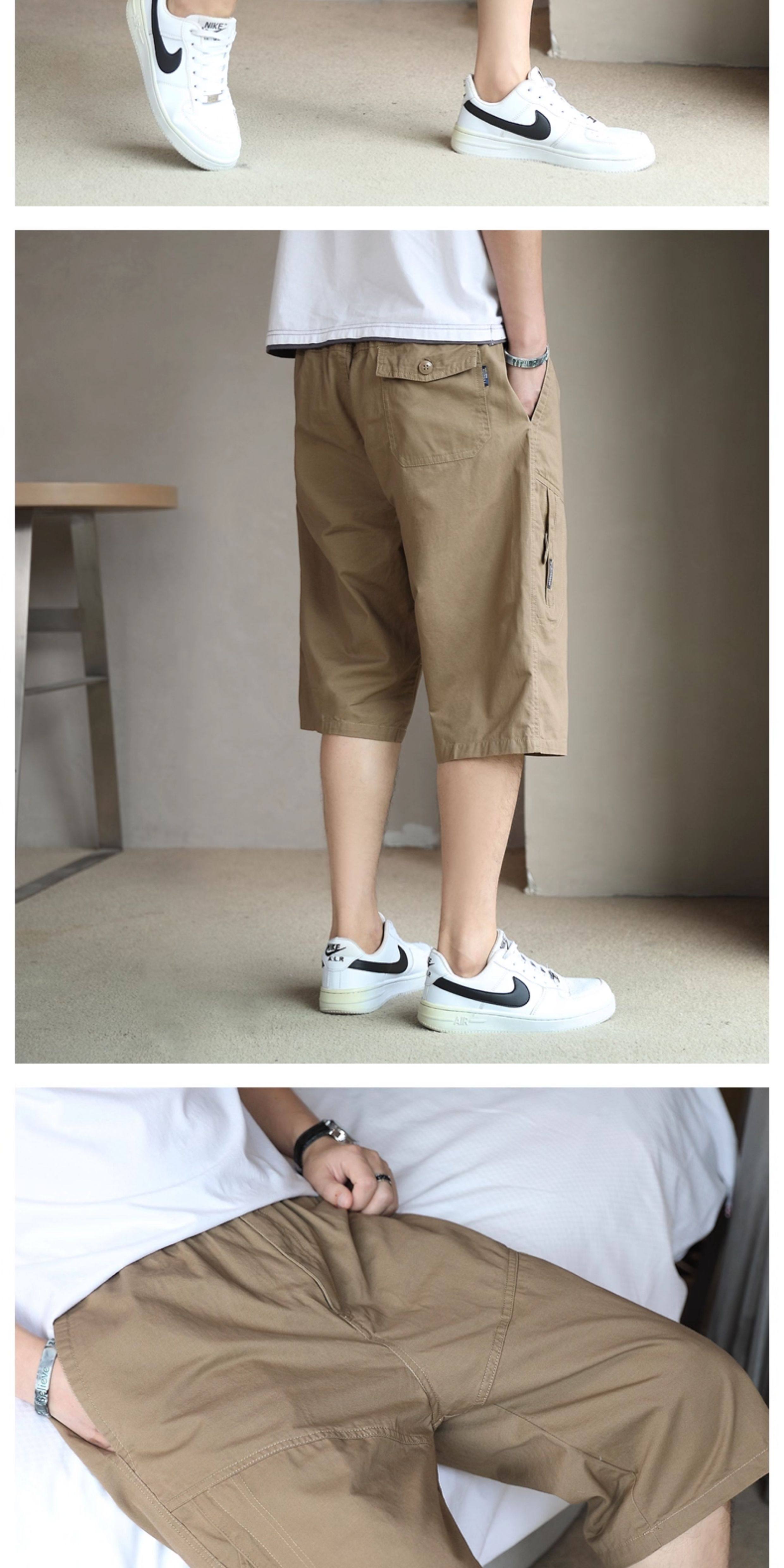 Summer Pure Cotton Cropped Pants Men's Thin Versatile Workwear Casual Six-Point Shorts Men's Straight Large Pants Trendy