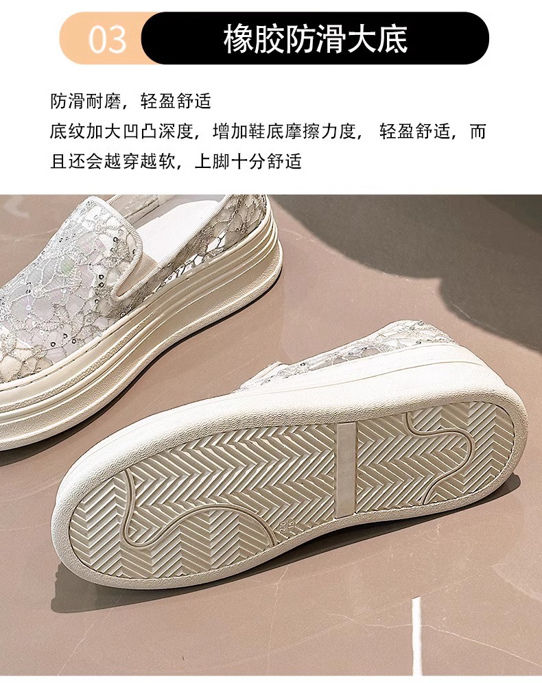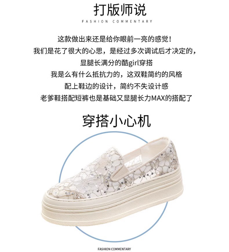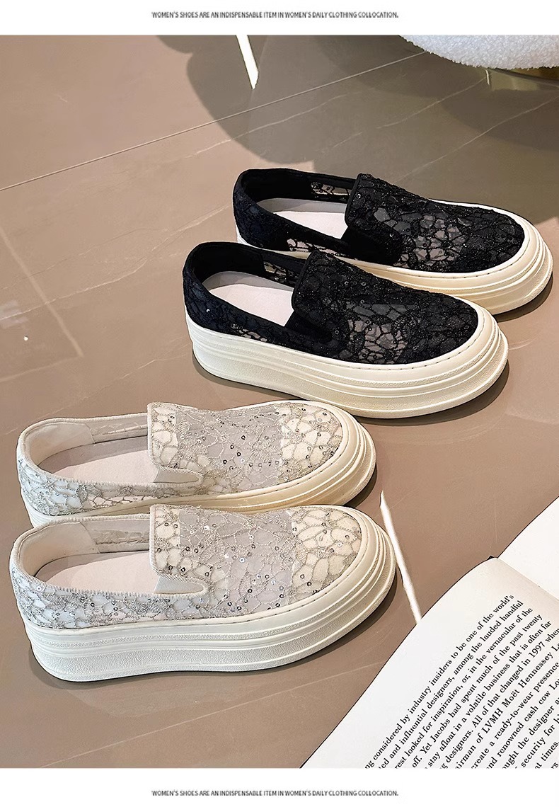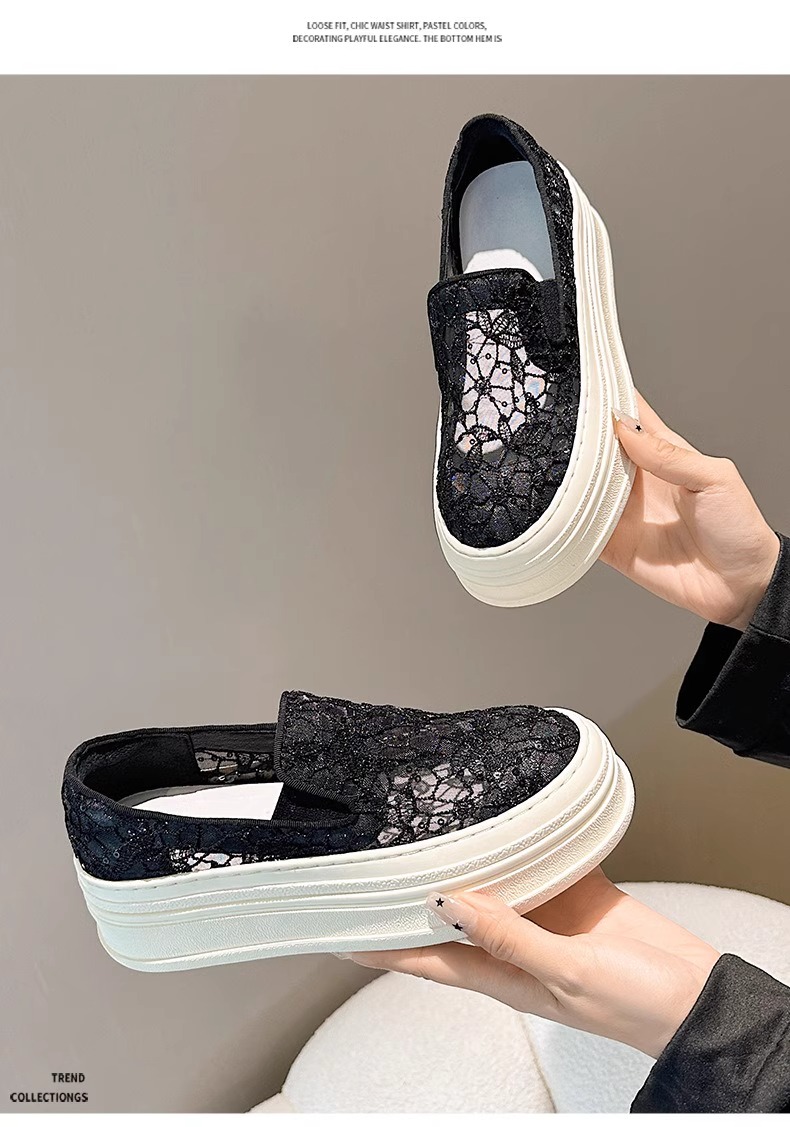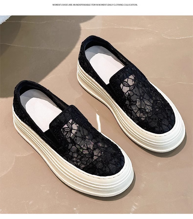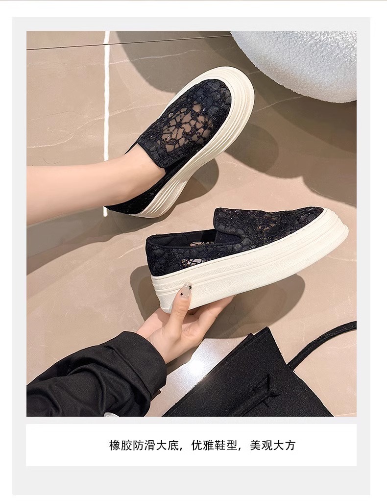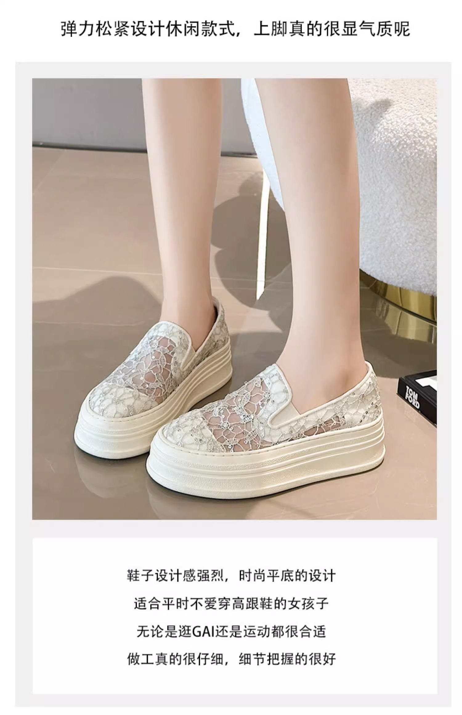 Hong Kong Loafers for Women, New Spring Style, Hollow Lace Platform Sole, Slip-On Fisherman Shoes, Breathable Height-Increasing Casual Shoes