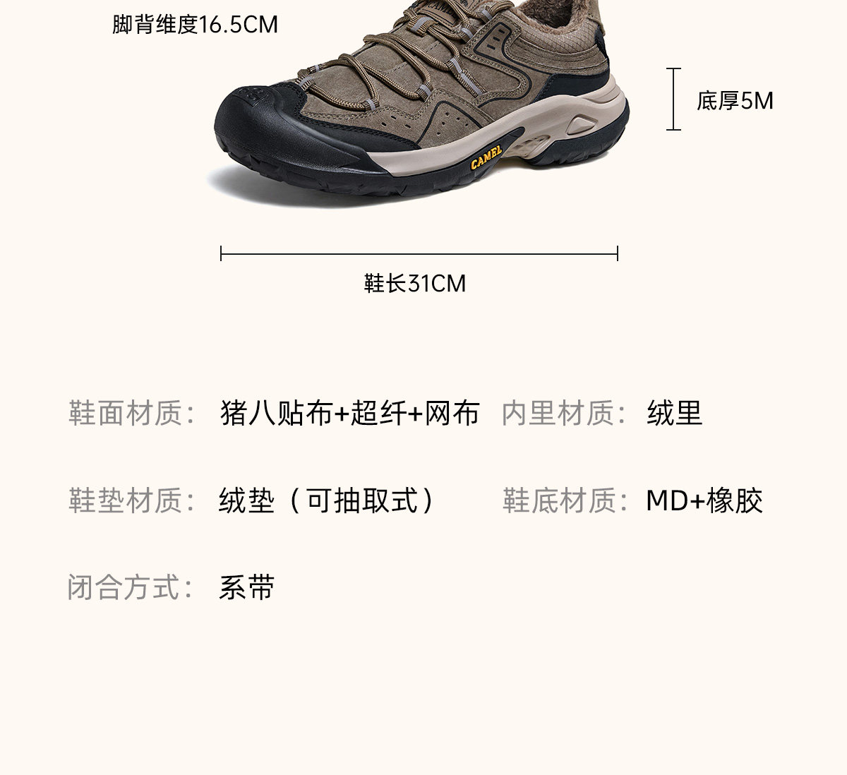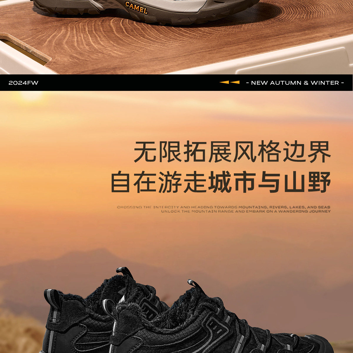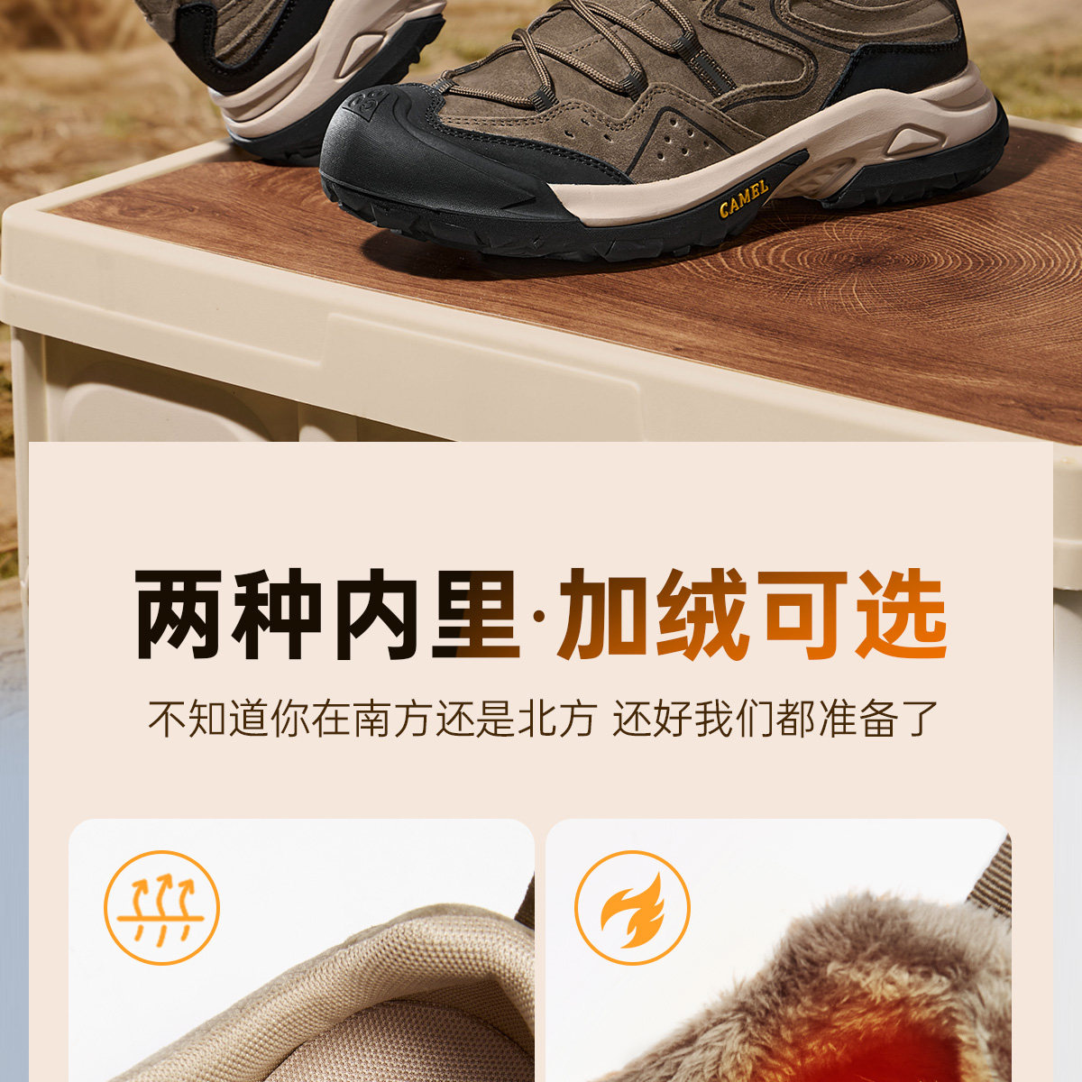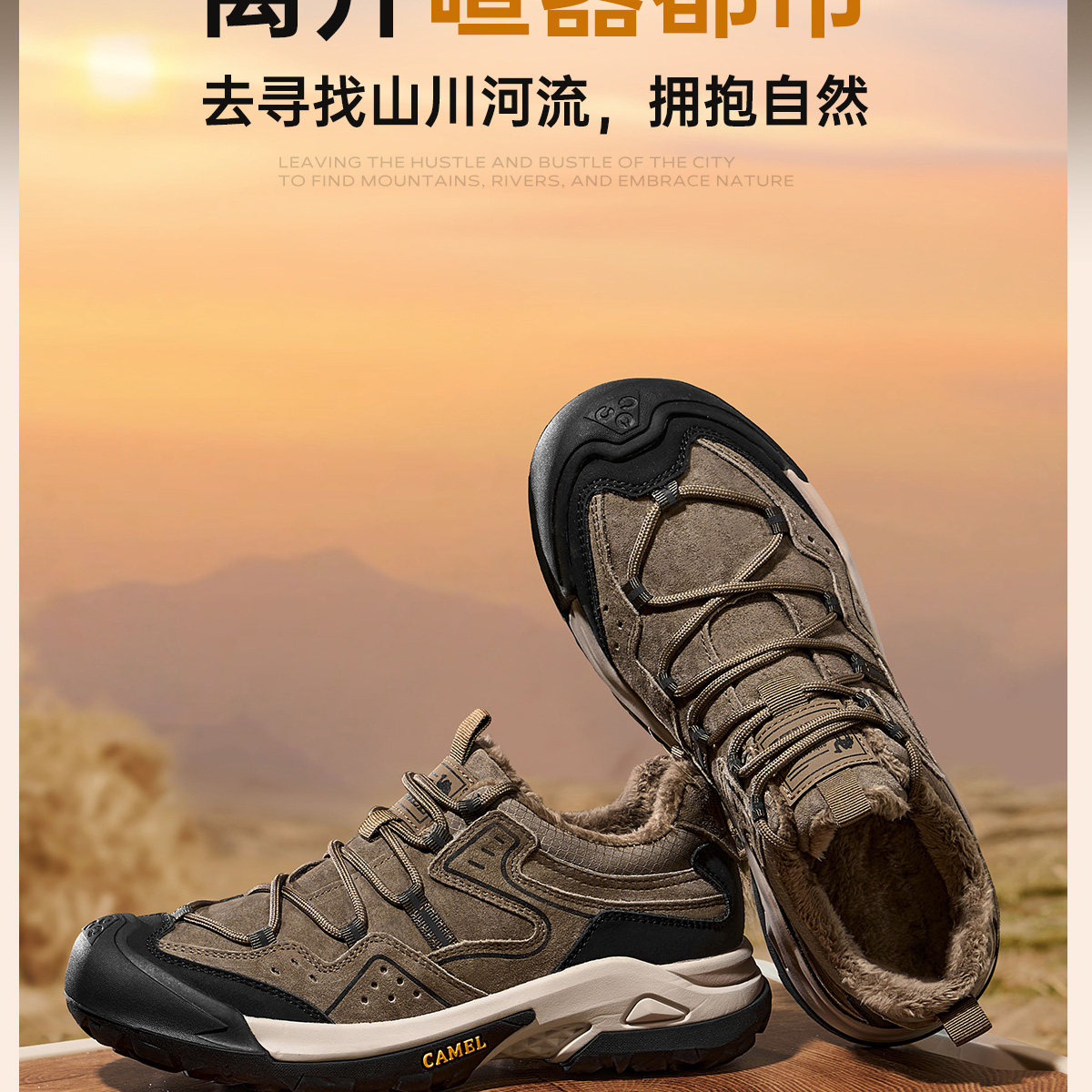 Camel Mountain Climbing Shoes Winter Men's New Cotton Shoes Outdoor Hiking Shoes Casual Fleece-Lined Sports Shoes for Men