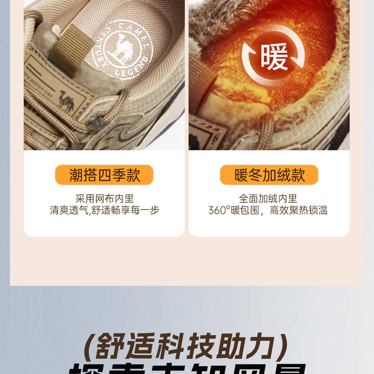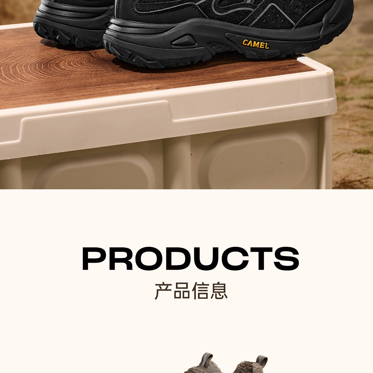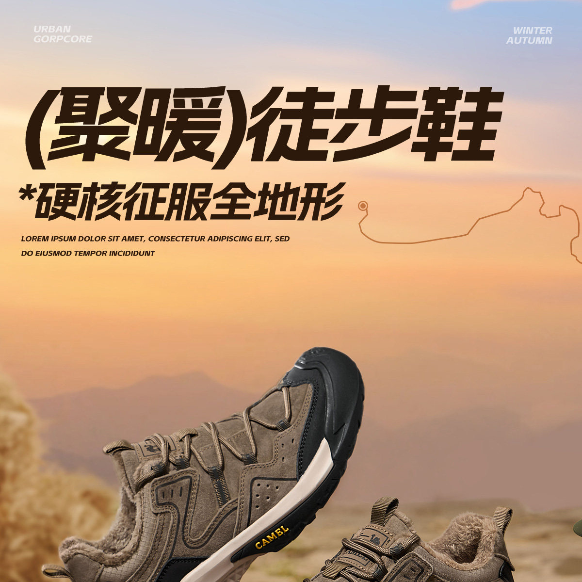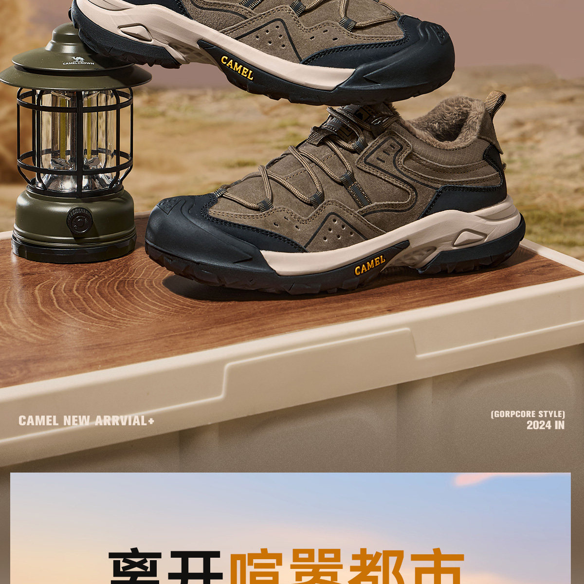 Camel Mountain Climbing Shoes Winter Men's New Cotton Shoes Outdoor Hiking Shoes Casual Fleece-Lined Sports Shoes for Men