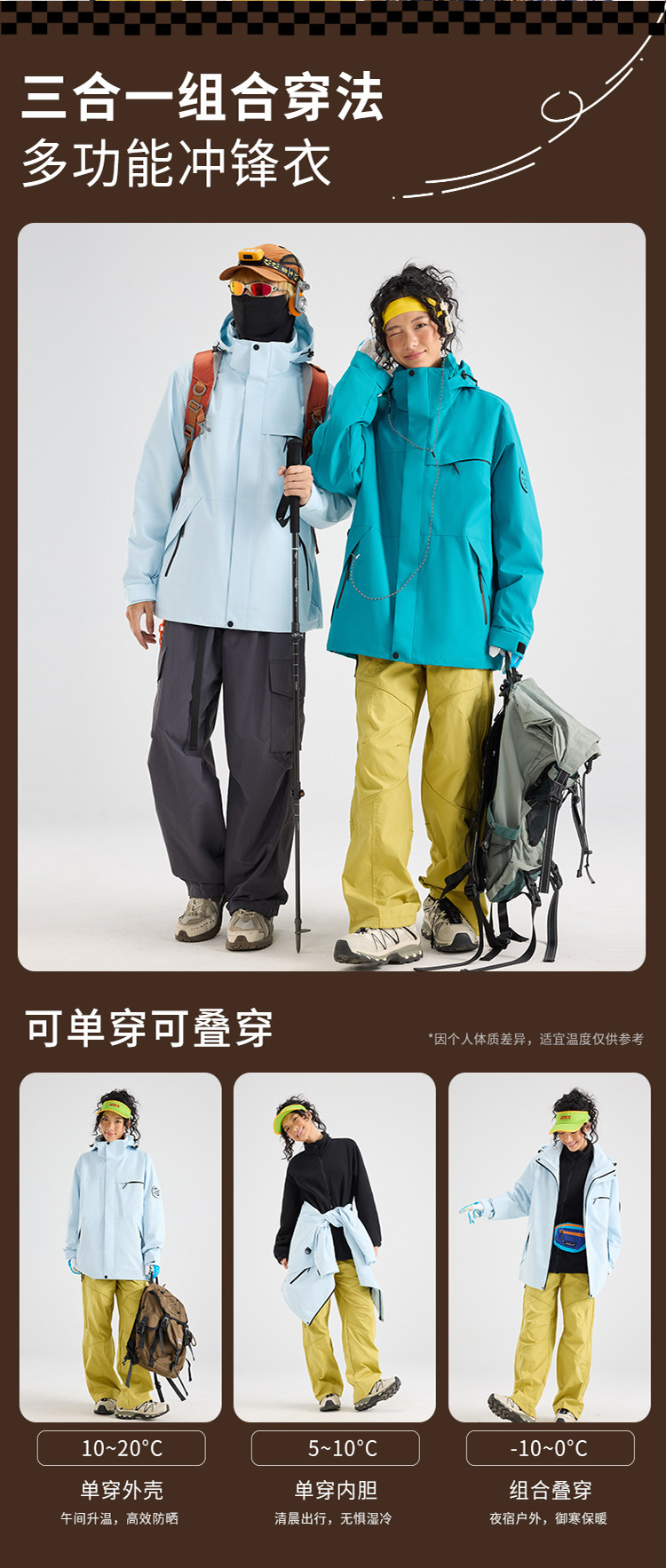 Nai Xing Yanni Women's Three-In-One Detachable Jacket, 2025 New Model, Windproof, Waterproof, Warm, Petite Women's Hiking Jacket