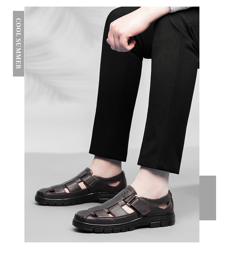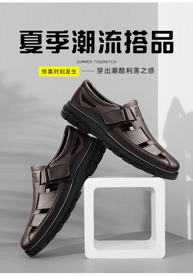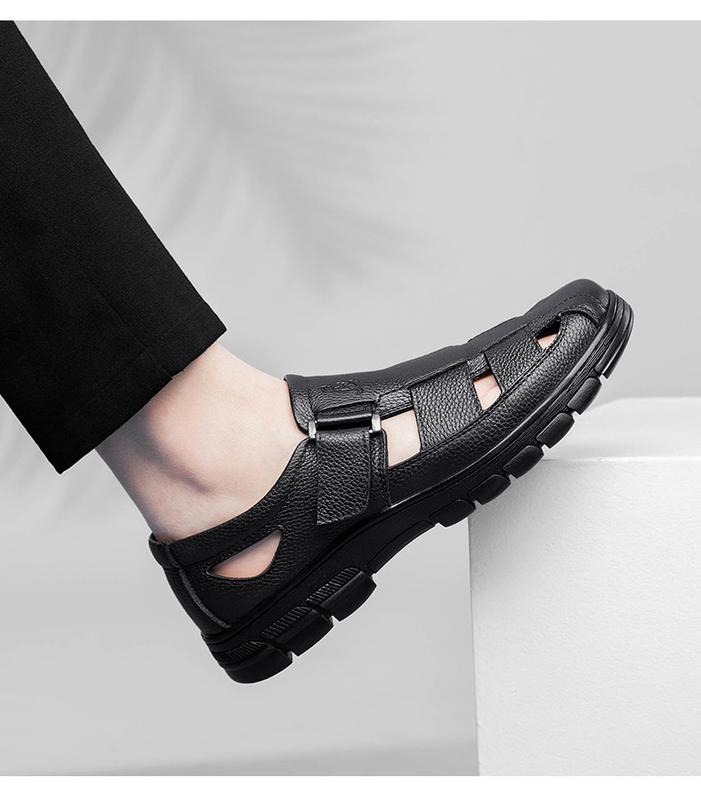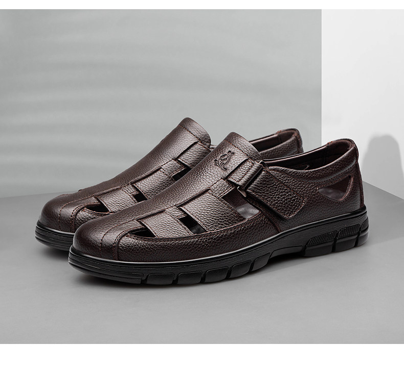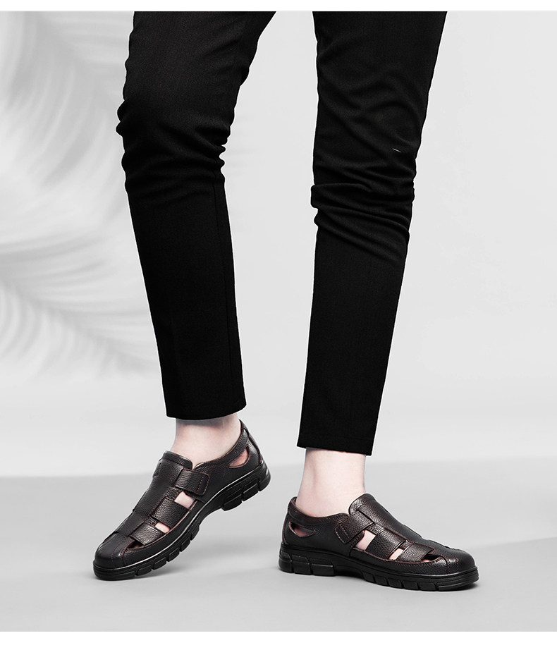 Australian Famous Kangaroo Sandals Men's Genuine Leather Summer Casual Thick-Soled Non-Slip Hollow Wear-Resistant Breathable Beach Shoes