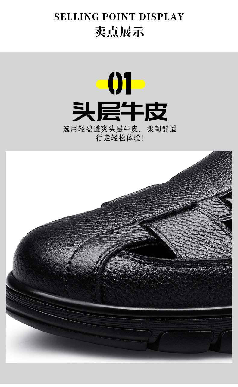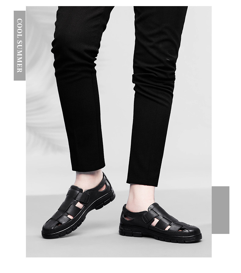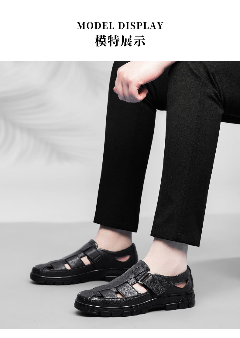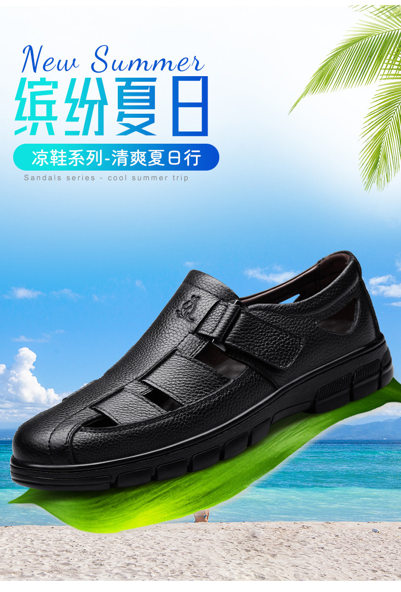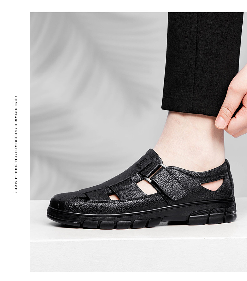 Australian Famous Kangaroo Sandals Men's Genuine Leather Summer Casual Thick-Soled Non-Slip Hollow Wear-Resistant Breathable Beach Shoes