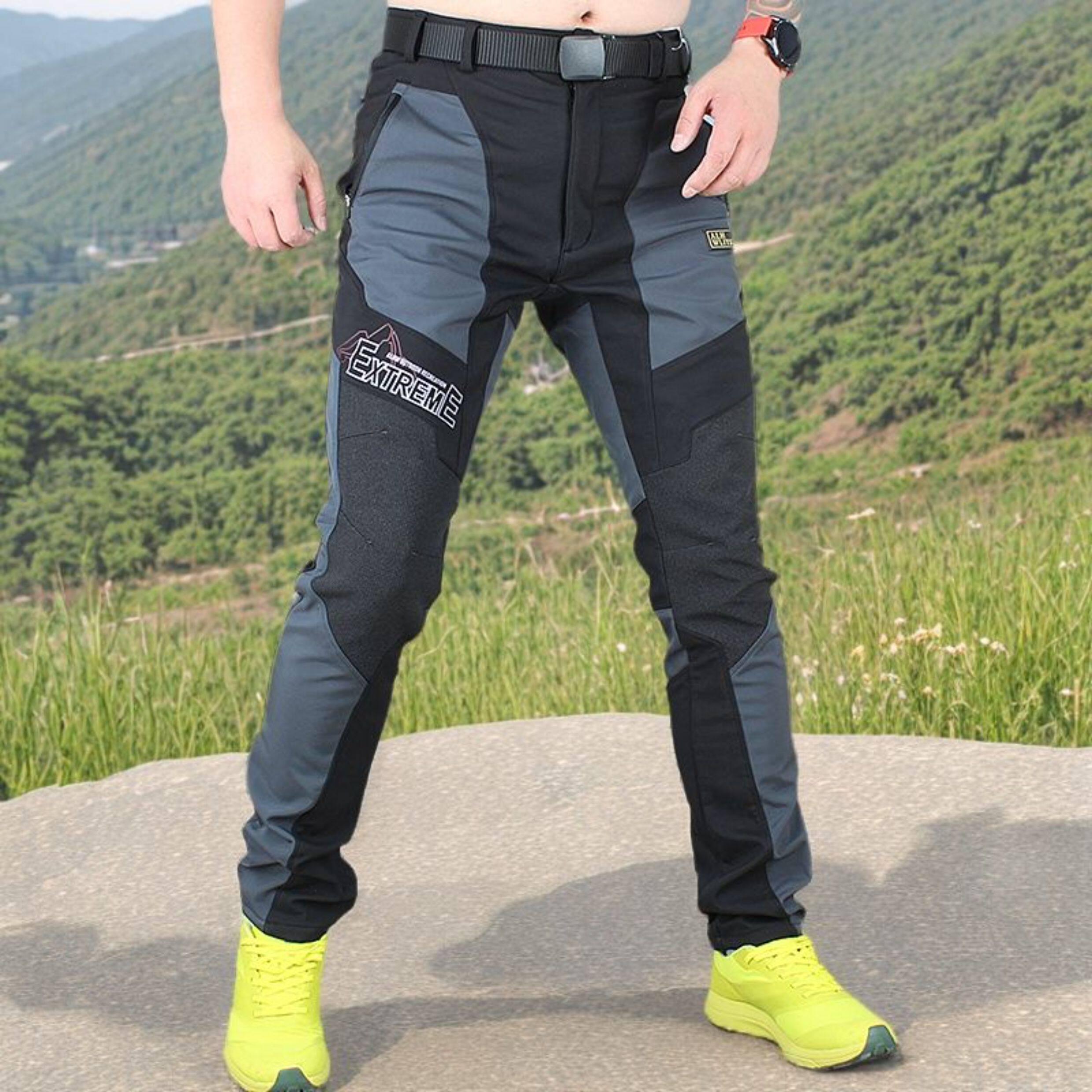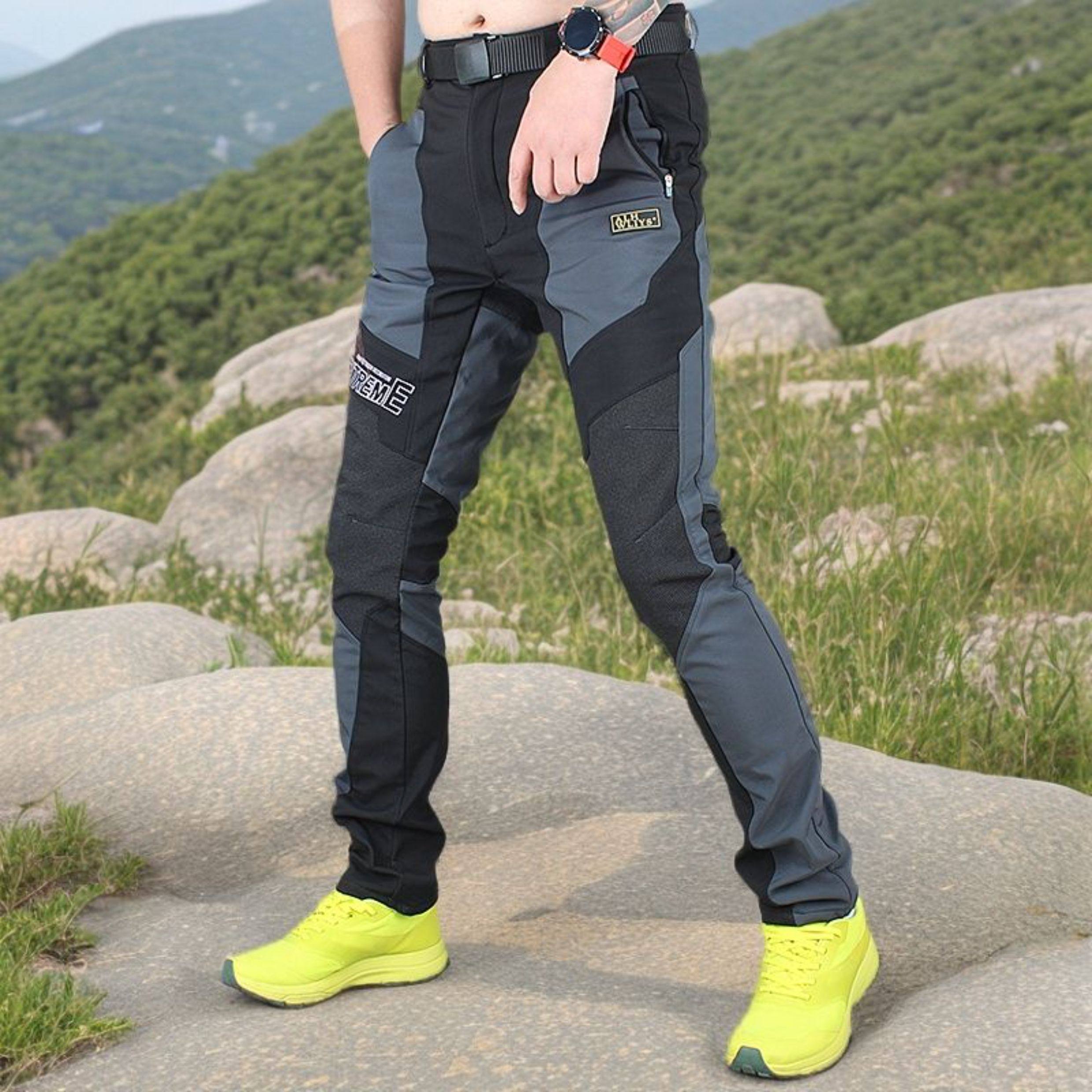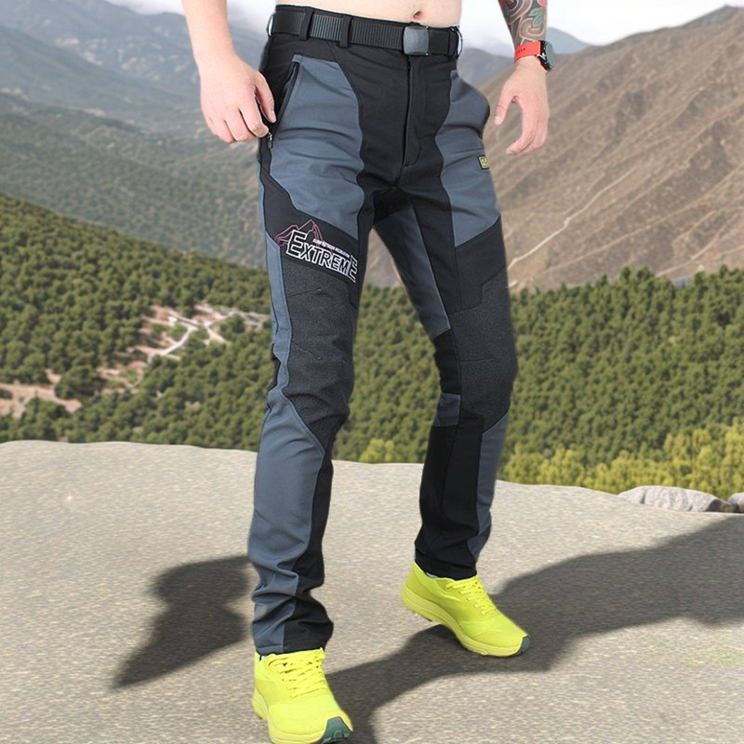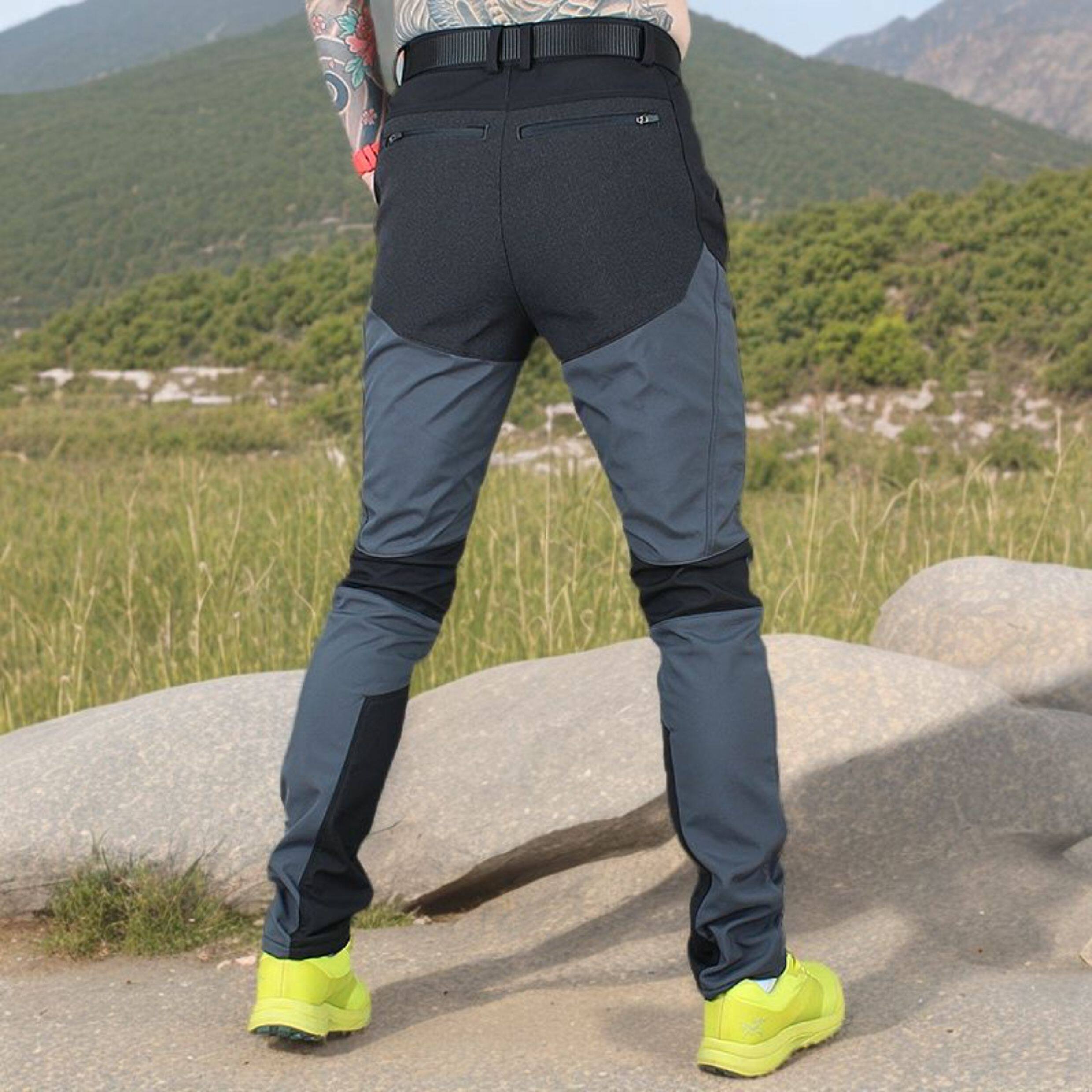Men's Outdoor Winter Pants with Fleece Lining, Thickened, Waterproof, Windproof, Slim Fit, Stretchy, Spliced Softshell Ski Pants